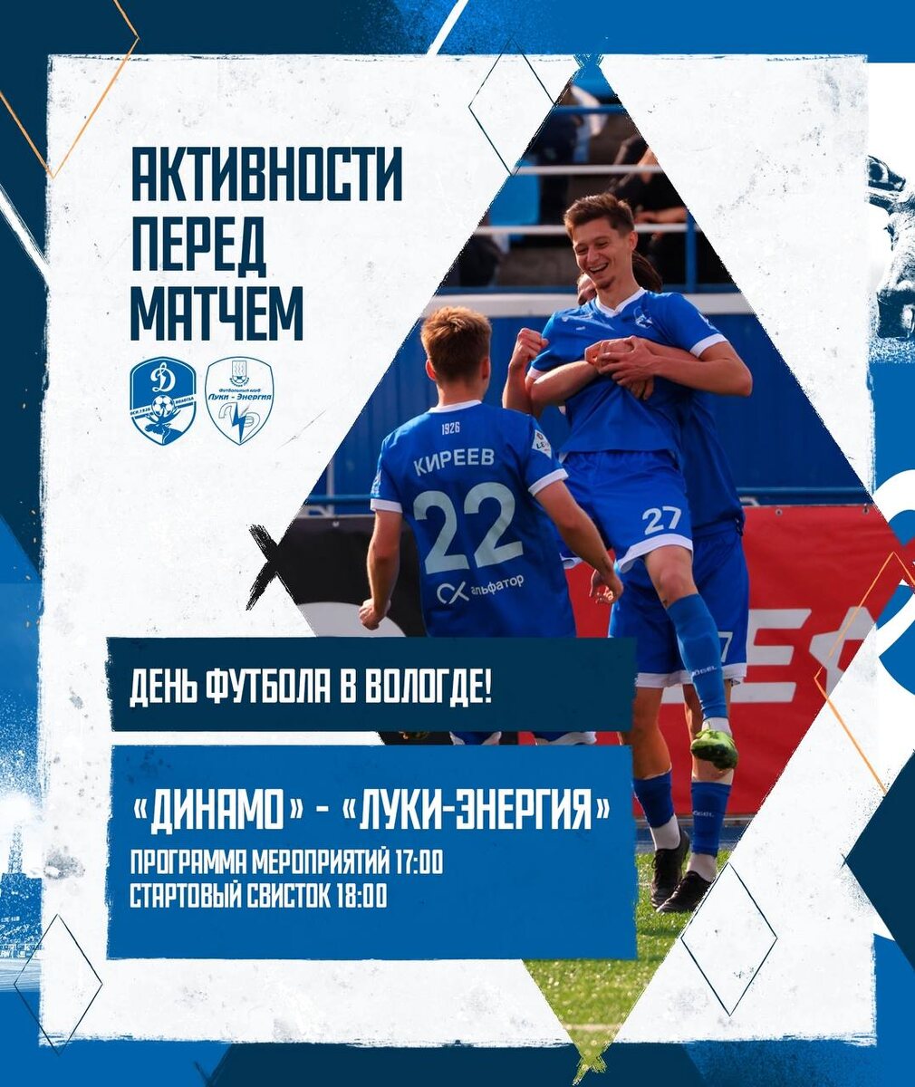 Завтра на матче с «Луки-Энергия» поддержим динамовцев на максимум! 💙 Листай матчдей программу, изучай схему мероприятий и приходи на родную арену пораньше: clck.ru/3MWdW9 🎟️ @dynamovologda