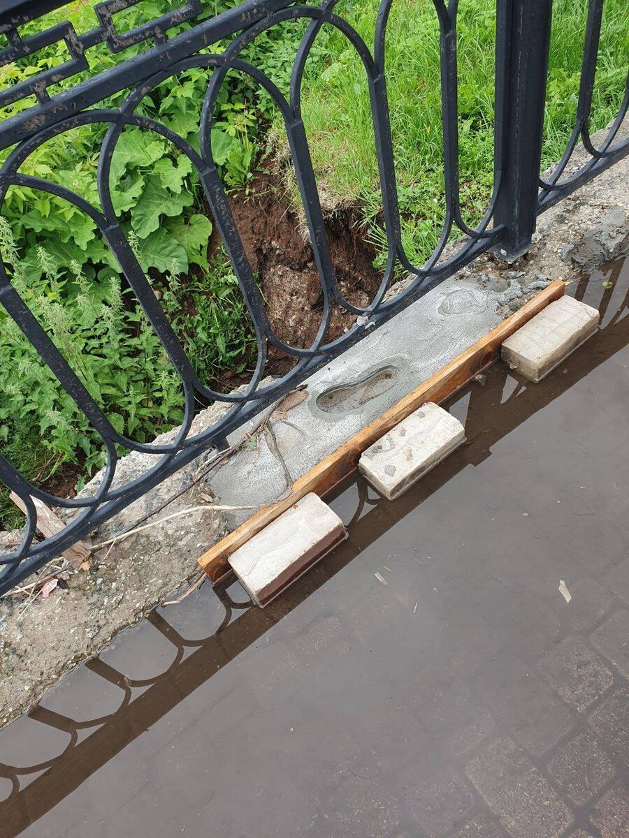 #нампишут: Как думаете, когда рухнет набережная в этом месте, будет оперативный пост от Симакова с фоточками из провала, что это точно не последствия организованного и принятого им ремонта, а аномальное лето/осень? От КК: На месте «утраченной» в прошлом году в процессе ремонта ливневки идет активное размытие склона дождевыми водами, что грозит разрушением набережной. Вместо организованного вывода воды, сделали запруду, из-за чего водяная лизза стоит от Присутсвенных мест и до ограды прогулочной зоны. Вода при этом подмывает грунт под самим тротуаром, что в скором времени приведет к его обрушению.