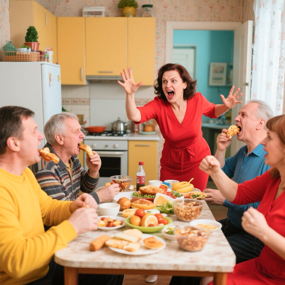 — Устроил тут фуршет для родни за мои деньги? — голос её прозвучал холодно и резко. — А ну-ка выметайтесь с моей кухни.