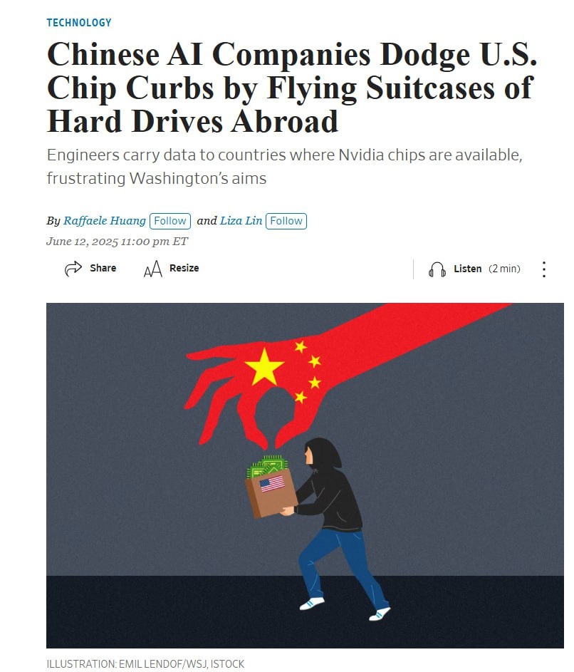 Китайские AI-стартапы обходят ограничения на экспорт чипов, отправляя инженеров в соседние страны с «чемоданами» данных для обучения моделей. Раньше компании из КНР обходились чёрным рынком для покупки современных процессоров Nvidia. После новых санкций США приходится идти на большие ухищрения. WSJ сообщает, что недавно четыре сотрудника китайского ИИ-стартапа вылетели из Пекина в столицу Малайзии Куала-Лумпур: каждый вёз с собой в рюкзаке 15 жёстких дисков с 80ТБ тренинговых материалов для новой LLM. Такой метод позволил не привлекать внимание и переправить данные быстро, в отличие от онлайн-передачи. По прибытию в Малайзию сотрудники арендовали 300 серверов Nvidia, на которых и обучают модели сейчас. Быстрый рост дата-центров в Юго-Восточной Азии и на Ближнем Востоке делает такую стратегию привлекательной, но теперь американцы рассматривают введение новых ограничительных мер.