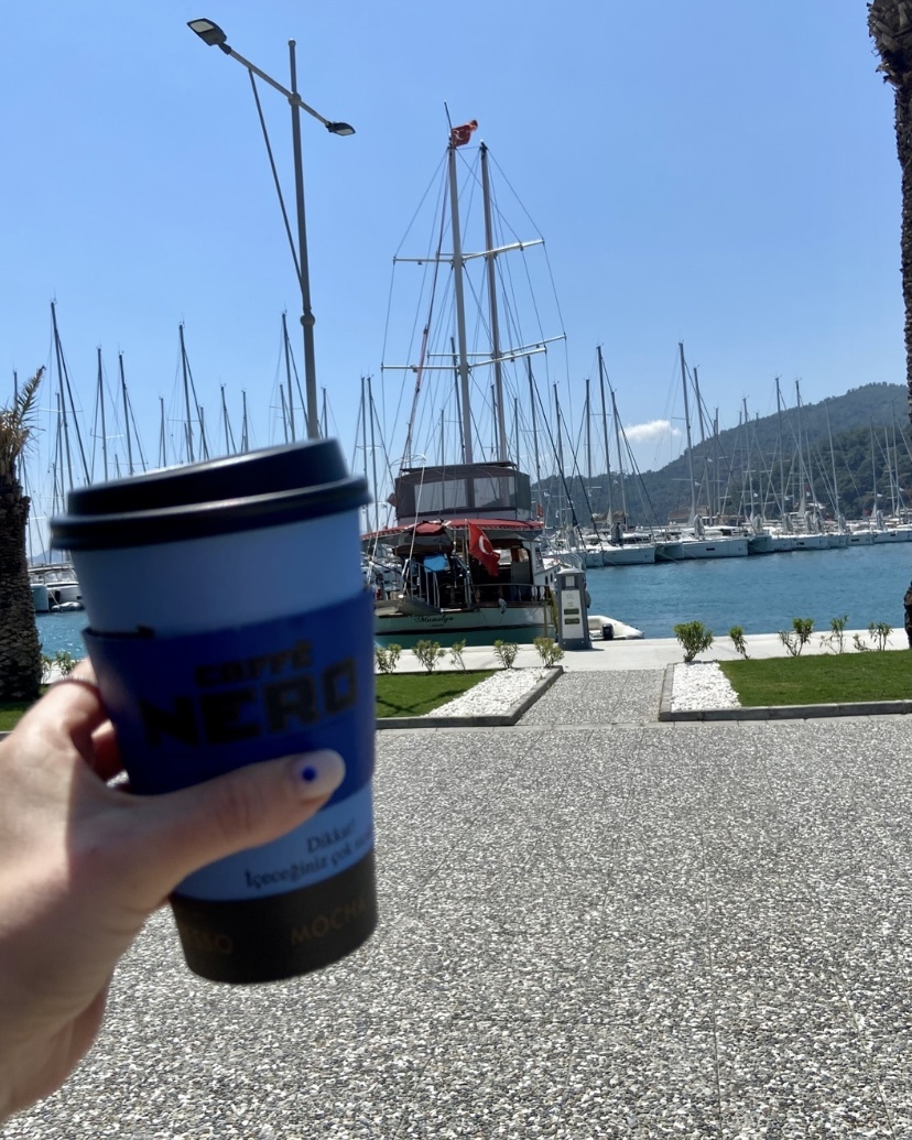 Кофейня NERO — это сеть кофеен в Турции и даже в тот факт, что конкретно этот филиал находится в этом лакшери месте не сделал прайс высоким. Эти цены на кофе сейчас «среднее по больнице» для Турции и вот у нас в Геленджике и то кофе дороже.