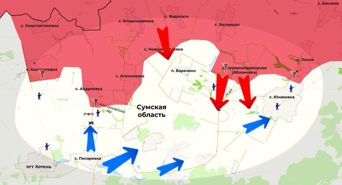 🪂 Сумское направление. После освобождения Яблоновки наши десантники развивают наступление на юг, вдоль логистической дороги на Писаревку, которая также соединяет две группировки врага в самой Писаревке и в Юнаковке. В самой Юнаковке десантники также продолжают уничтожать укронацистов и зачищать постройки. ▫️ Дневник Десантника