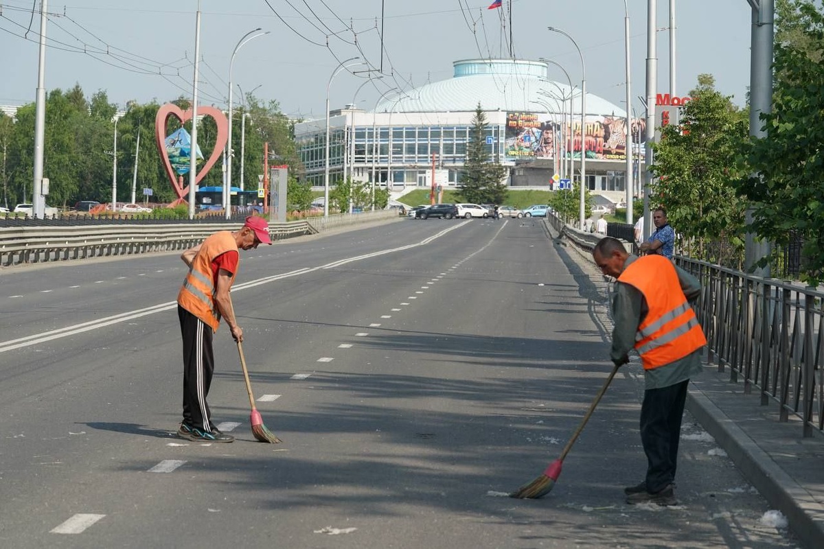 Дорожные службы приступили к уборке Красноармейского моста Фото: Евгений Горбачев | @gazetakemerovo