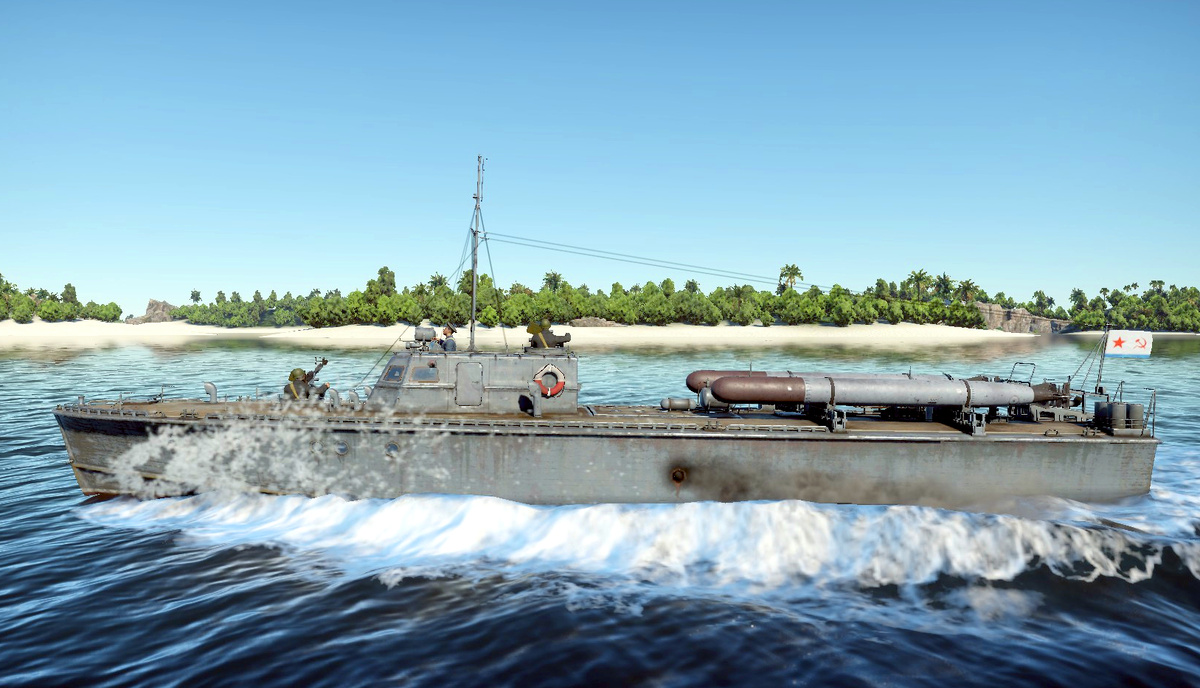 Торпедный катер Д-3 – ранний советский торпедный катер в War Thunder. Разработанный в 1939-1940 годах, он успешно применялся в реальных боевых действиях, благодаря своей мореходности и живучести. В игре Д-3 — это быстрый и маневренный катер, специализирующийся на торпедных атаках. Д-3 проектировался как улучшенная версия Г-5. Его деревянный корпус обеспечивал хорошую живучесть к малокалиберным попаданиям. Три бензиновых двигателя ГАМ-34 давали скорость до 83 км/ч. Экипаж 9 человек. Водоизмещение 36.2 т. Основное вооружение – две 533-мм торпеды 53-38 в бугельных аппаратах. Это ключевое отличие от Г-5, так как позволяет пускать торпеды, не опасаясь собственного подрыва при маневрировании. Дополнительно катер несёт два пулемета 12.7 мм ДШК для борьбы с лёгкими целями. В War Thunder Д-3 — это классический торпедный катер. Он не имеет брони, но компенсирует это скоростью, маневренностью и мощными торпедами. Преимущества. Две 533-мм торпеды ваншотят большинство кораблей на своем уровне. Вы