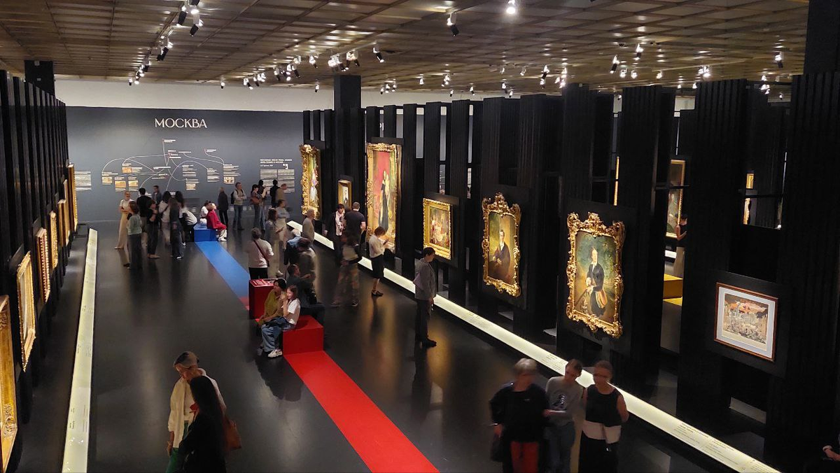 Прежде, чем перейти к самим полотнам и вехам биографии мастера, хочется сказать спасибо организаторам выставки в Москве и отметить оригинальную идею оформления помещений выставочного пространства - скажем так "без избыточных обрамлений". Огромный зал зонирован на три тематических периода жизни и творчества Карла Брюллова - Рим, Москва, Петербург, а стены - глубокий матовый черный фон. А вот на фоне этих сдержанных стен акцентами полотна Брюллова в тяжелых резных рамах и ярких софитах.