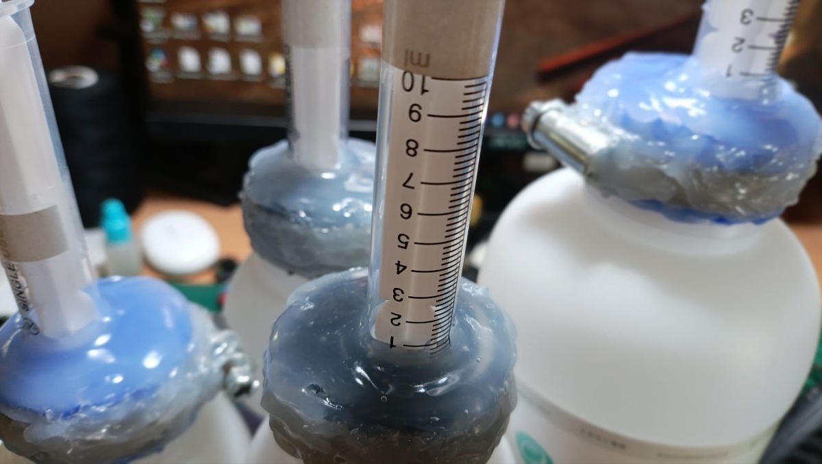 Особенно, если хочется заливать по объему, а в инструкции пропорции даны только для веса. Начну с самого простого, что сам узнал не так давно. Шприцы "без резинки" называются двухкомпонентными. И у нас они редко бывают в аптеках. Кажется, их запретили для людей. Но вот для животных - все еще используют. Теоретически, можно купить у ветеринаров. Но я просто заказал на маркетплейсе. Почему именно двухкомпонентный шприц? От отвердителя резинка очень часто разбухает и начинает чуть пропускать. Точно отмерять становится трудно. И если не выдвигать поршень перед хранением, черная часть просто присохнет и останется внутри. С основным компонентом смолы тоже такое случается, но немного реже. А вот чисто пластиковые поршни справляются лучше. Дальше идет самая скучная для меня часть. Допустим, моя смола смешивается как 100 к 60. И вот вроде бери себе 10 кубиков одного компонента и 6 другого, но так делать нельзя. Да, можно просто взять 10 кубиков, взвесить, взять 6, тоже взвесить и откорректирова