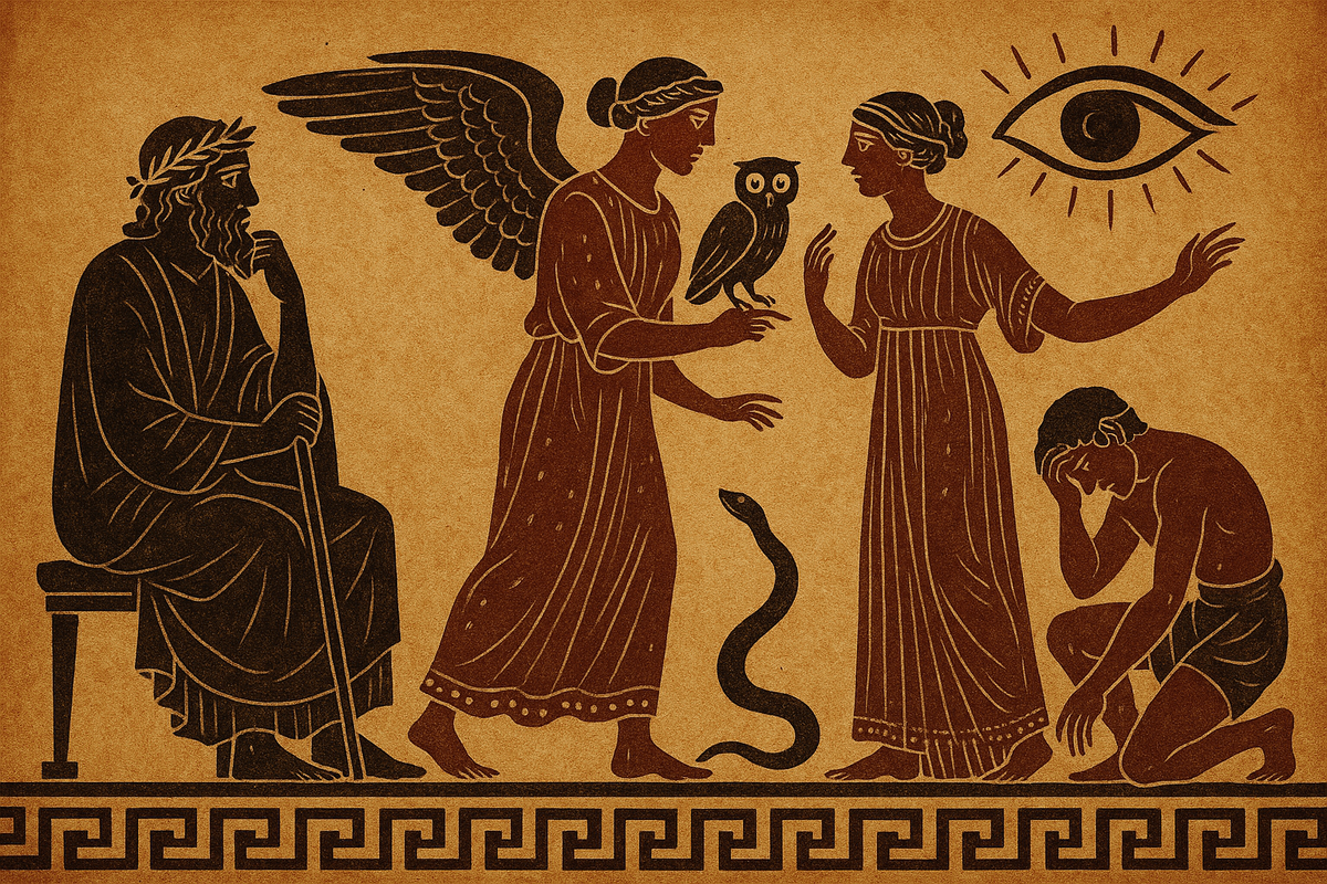 Изучая верования древних греков, поражаешься, как много из них дожило до наших дней в той или иной форме. Мы до сих пор говорим "Будь здоров!" чихнувшему, носим амулеты от сглаза и интуитивно чувствуем себя неуютно, если кто-то слишком настойчиво нас хвалит. Это доказывает, что стремление человека искать знаки и защищаться от неведомого – вечно.
