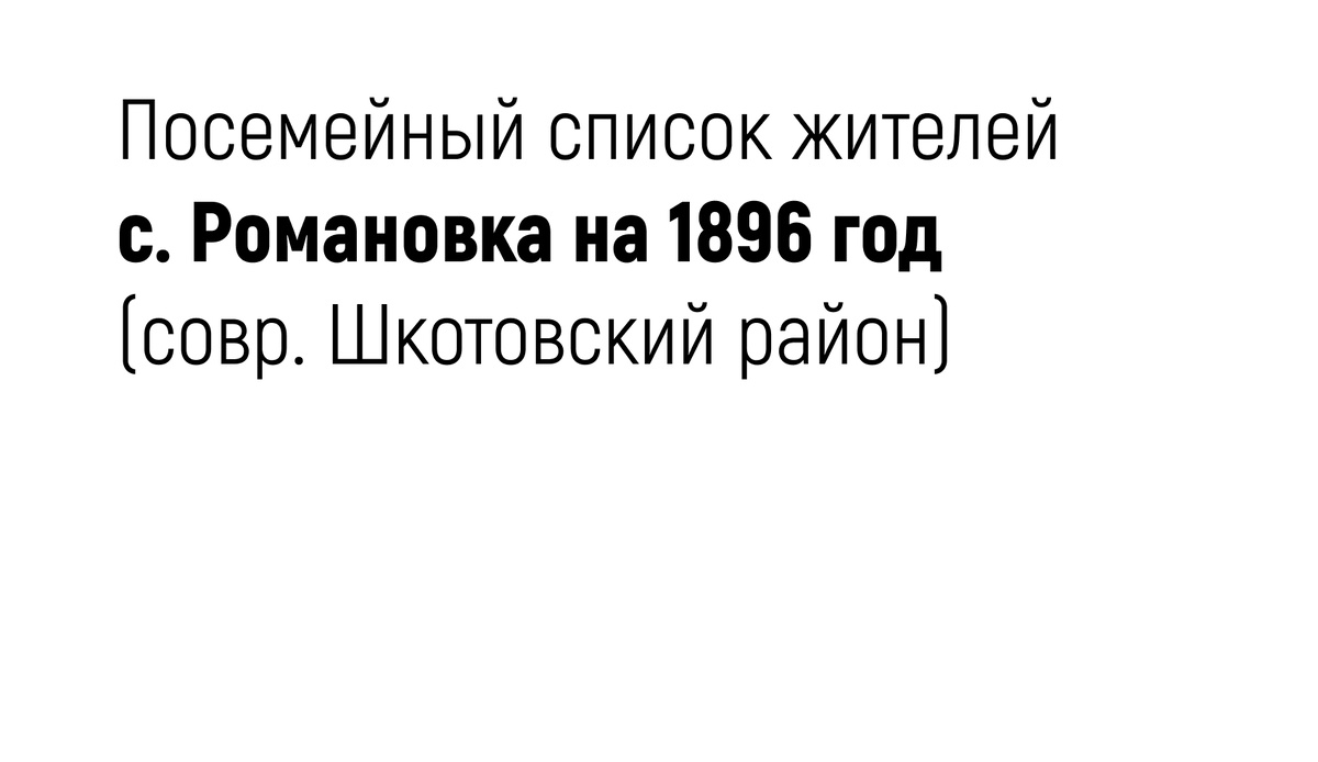 Ниже привожу посемейный список жителей села Романовка на 1896 год (современный Шкотовский район) с указанием ФИО главы семьи и его возраста.
