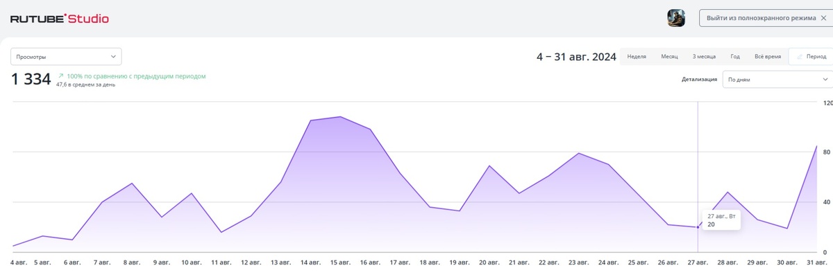 Я на Рутубе с Августа 2024 начал выкладывать сначала ролики без озвучки (немые ролики) Но только чтоб проверить данную площадку и заметил что они начали набирать просмотры. Не такие конечно как у топовых блогеров, но все же. Больше всего меня поразило что за Август месяц я набрал 1334 просмотра