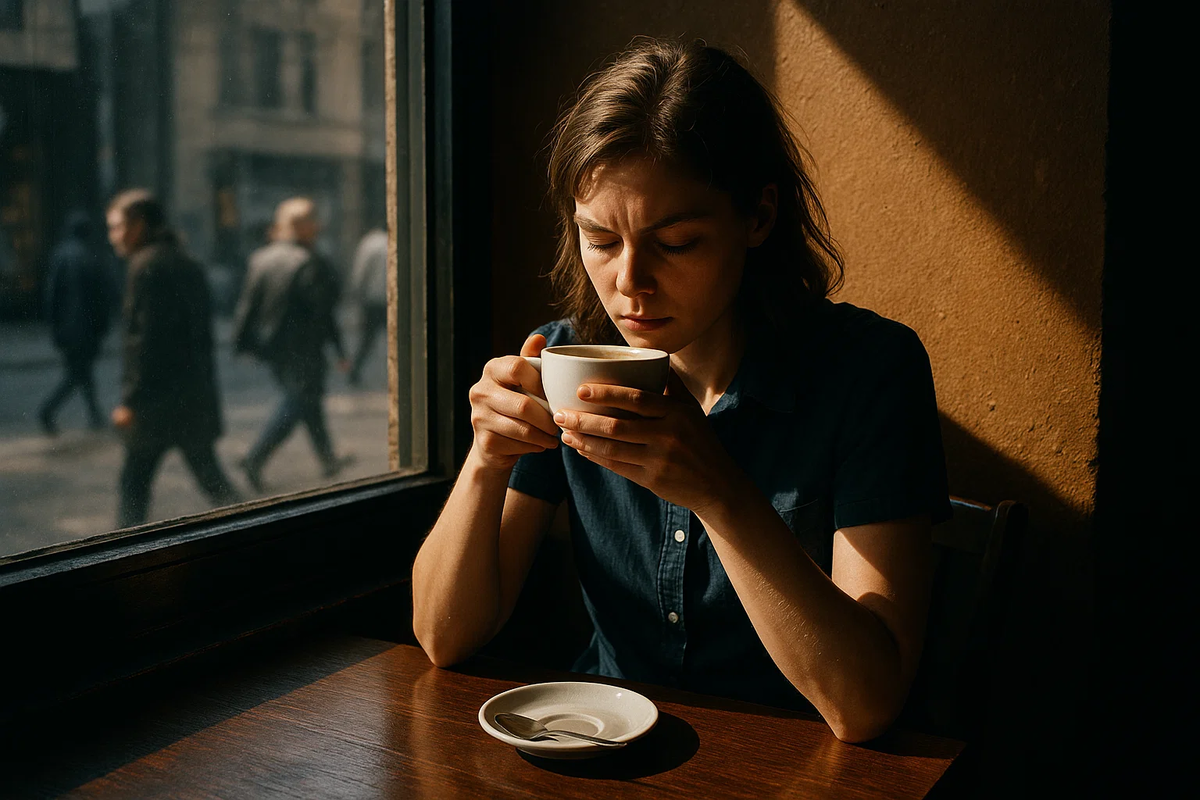 Кафе пахло корицей, жжёным молоком и чем-то тревожно-сладким, как перед осенней грозой. Дарья сидела у окна, уткнувшись в чашку, будто надеялась, что кофе сможет не только взбодрить, но и как-то заземлить. За окном торопились люди, а у неё был просто перерыв между сменами — двадцать пять минут.