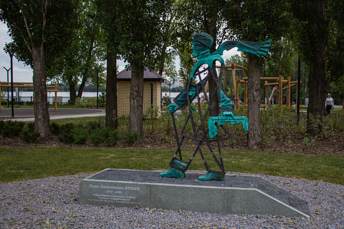 Воронеж — город в котором любят необычные памятники. Пирамида, Молекула или знаменитый Чупа-чупс - давно стали символами города. Некоторые вызвали бурное негодование общественности: конь Яруж, Аленка, призрак Бунина, а некоторые незаслуженно забыты или отодвинуты на второй план. Про пирамиду в северном, памятник советской науке и шарик Пролетарии всех стран я уже писал, их удивительные истории пересказывать не буду. Ну а начнем с Петровской набережной, где поселился призрак Бунина. Как и многие другие необычные памятники, Бунин родом не из Воронежа. Арт-объект стал подарком из Республики Беларусь. Автором скульптуры выступил белорусский художник Александр Слепов. Он создал прозрачный силуэт писателя, который идет по городу, увлеченный его улицами и людьми. Недалеко от набережной, в тени забора строительной площадки, притаился самый растиражированный в мире туристический символ — знак «Я ♥ Воронеж». Оригинальный логотип был разработан в 1970-х годах в ходе рекламной кампании по разви