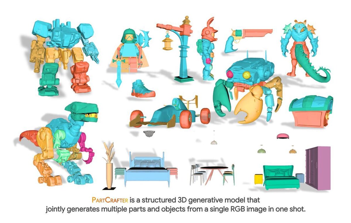 🚨 Нейронка, которая ломает законы 3D-графики — что нужно знать Ты кидаешь одну фотку — получаешь полноценную 3D-модель. Не болванку, а разложенную по частям. Каждая — редактируемая. Структура, объём, детали — всё собрано автоматически. 🧠 Это PartCrafter. ИИ от ByteDance и Carnegie Mellon, который ломает законы 3D-графики. Один кадр — и он достраивает даже то, что не видно. Делит объект на части. Создаёт чистейшую сетку. Без масок, без 3D-аннотаций, без танцев с бубном. Внутри — трансформер, который одновременно видит пиксель и весь объект. Он сам понимает, как всё должно соединяться. Как будто за тебя поработал целый отдел. ⏱ И всё это — за секунды. 🔗 Ссылка на нейросеть Ставь лайк, если полезно ❤️ ⚡️НейроМастер⚡️