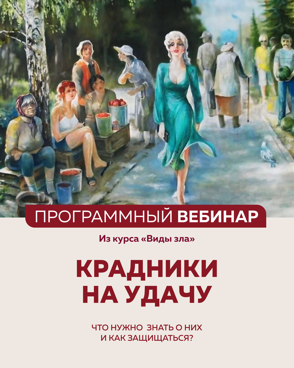 КРАДНИКИ. КРАДНИКИ НА ДЕНЬГИ И УДАЧУ. ЧТО НУЖНО ЗНАТЬ О НИХ Вебинар Елены Шубиной «Крадник» — термин из области магии. А вот само явление, когда один человек незаконно присваивает идеи, дары, таланты и ресурсы другого — увы, универсальное. Сейчас, когда все мы стали очень информационно открыты, и всё больше людей стали восприимчивы к посторонним влияниям, крадники в энергетическом поле людей встречаются всё чаще. И именно они становятся причиной неудач, потерь возможностей и веры в себя. Я приглашаю вас поговорить о крадниках с точки зрения биоэнергетики, глубинной психологии и знании о правах. На вебинаре я очень подробно расскажу вам о механизмах работы крадников, о том, почему и на кого они «ложатся», и как защищаться от них. Этот вебинар особенно нужен вам, если вы «человек-удача». Живёте легко, переполнены творческой энергией, а ваша продуктивность зависит от внутреннего состояния и стечения обстоятельств. Он также пригодится, если вы на виду, благополучны и живёте в достатке, и