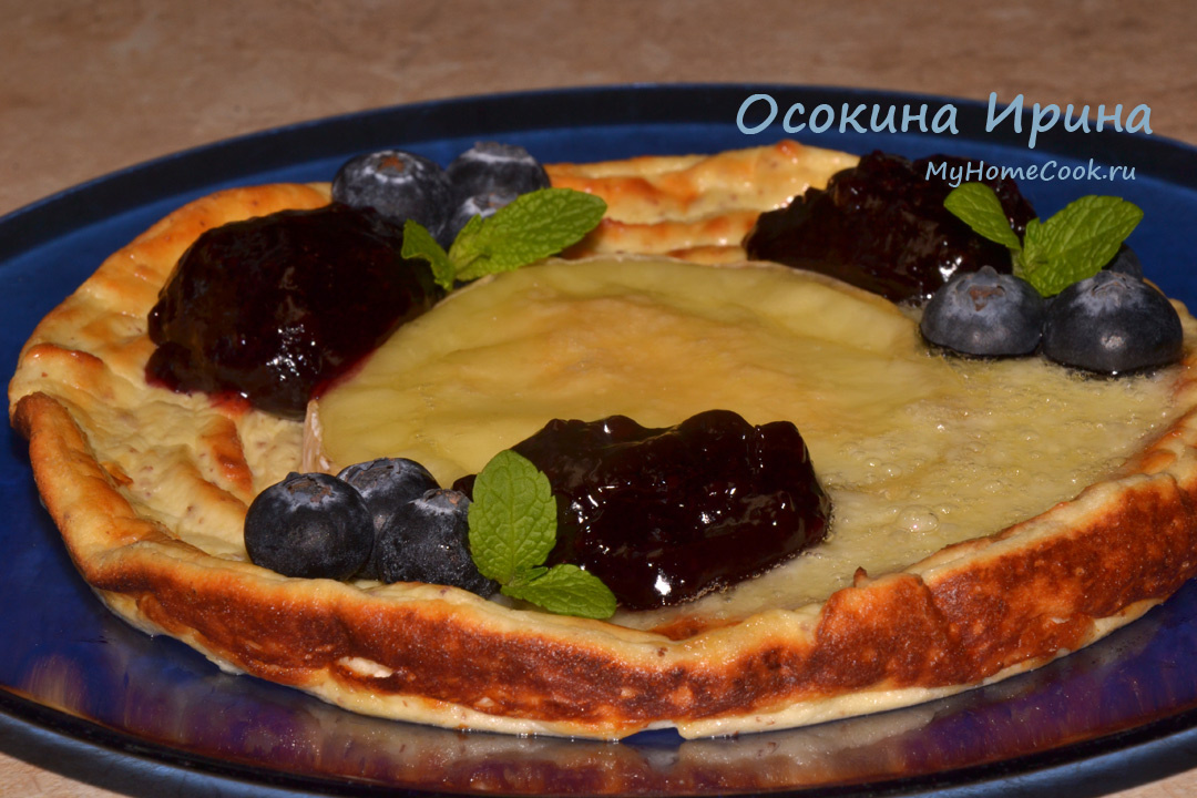 Иногда просто необходимо погурманить, и хорошо когда ты сама можешь себя побаловать, не выходя из дома и не вызывая курьера: в чашу блендера вбила 2 яйца, добавила 2 ст.л. сметаны, 1 ст.л. коричневого сахара, 400 г творога, 1 дес.л. льняных отрубей и пробила хорошенько, разложила массу по двум порционным сковородам, формируя в середине углубление. Кружок сыра "Камамбер" разрезала плашмя пополам и разложила в углубления срезами вверх, а потом запекла в духовке, разогретой до 180 градусов, в течение 15 минут. Переложила готовые запеканки в тарелки, гарнировала джемом из дикоросов и голубикой и сразу подала. Гастрономическое волшебство! Сочетание вкусов просто бесподобное) Приятного аппетита