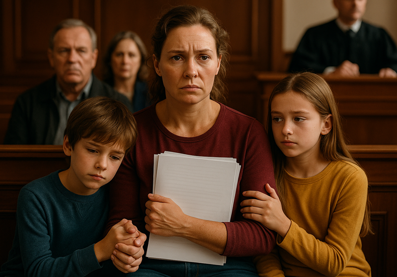 В зале суда было холодно и душно. У меня было впечатление, что даже воздух здесь был осуждающий. Я сидела на скамейке, сжимая в руках стопку документов: справки о доходах, счета, письма от судебного пристава. На другом конце комнаты — мои бывшие свёкры. Мать Марка сидела с поджатыми губами, а отец даже не посмотрел в мою сторону.