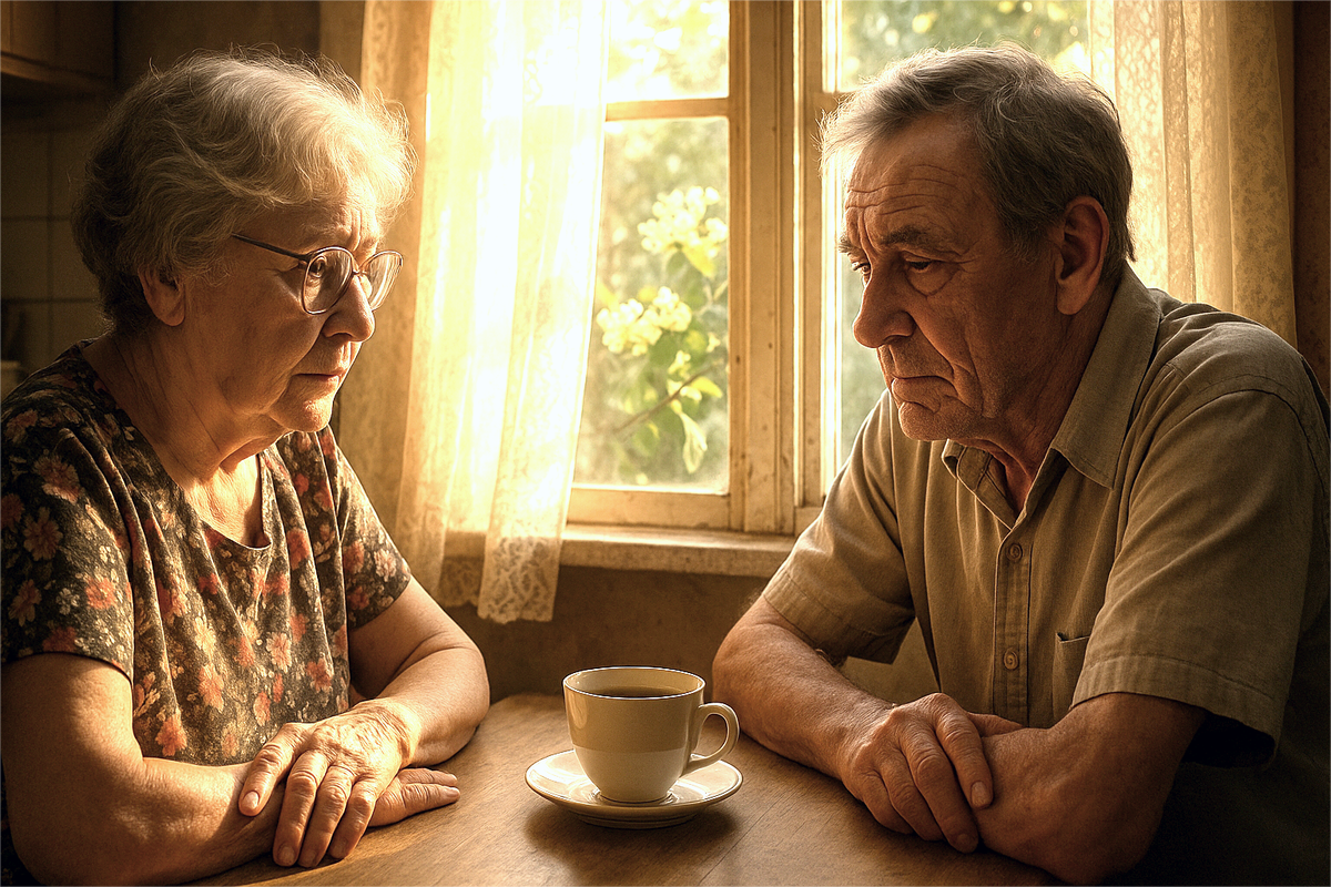 Их жизнь превратилась в параллельные прямые. Она — со своими книгами, подругами, хором ветеранов. Он — с гаражом, рыбалкой, домино во дворе. Общий дом, общий стол, вежливые вопросы о прошедшем дне. И пустота.