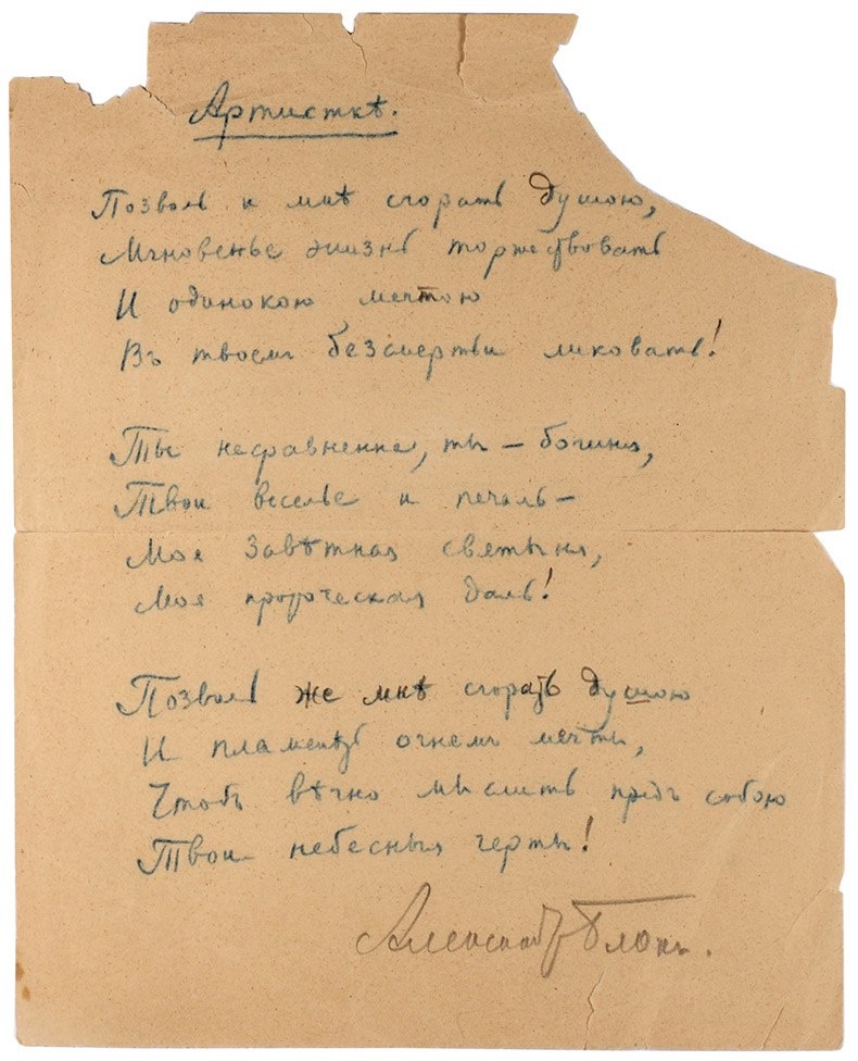📜 В Петербурге на торги выставили рукопись Александра Блока — с автографом поэта