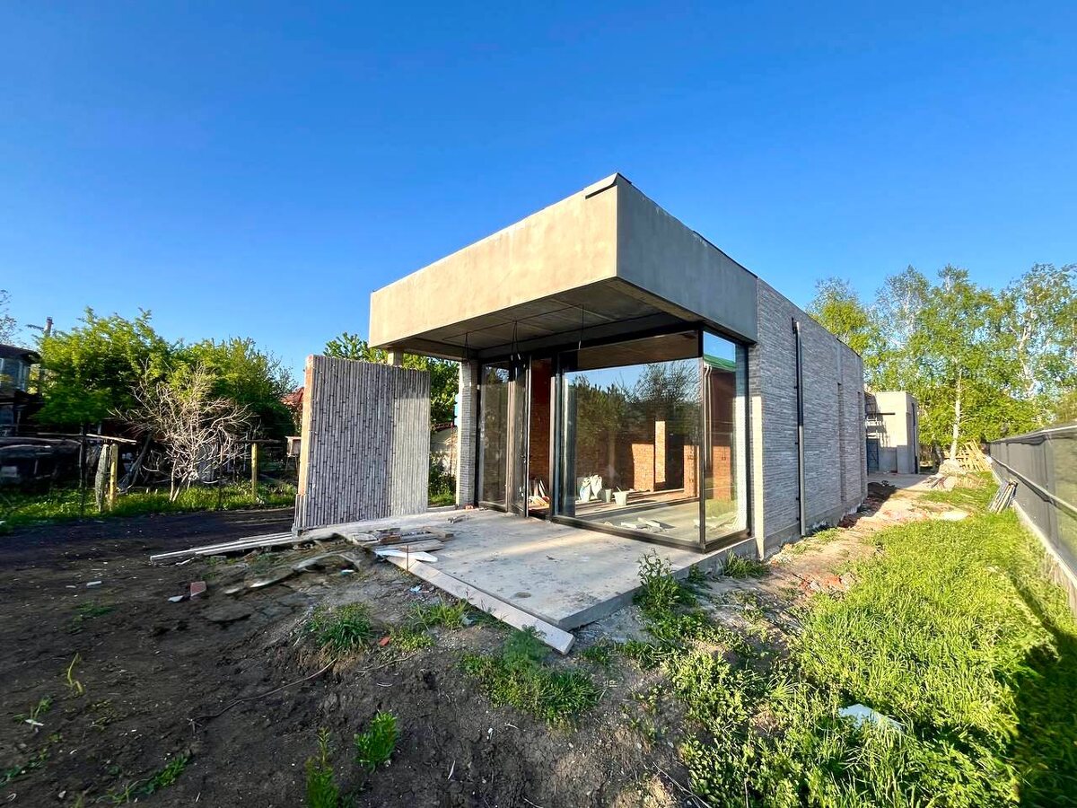 🔥🔥🔥Этот дом действительно для тех, кто ценит качество и нестандартный подход к строительству современного дома. ❗️В ПРОДАЖЕ 🏡Новый коттедж в стиле лофт, возведен по индивидуальному проекту, архитектор спланировал дом в одноэтажный, общей площадью 160 кв.м. ◾️По конструктиву дом возведен на ленточном фундаменте, монолитные колонны, сердечники и армопояс, внутренние стены — забутовочный кирпич, наружные — кирпич ручной формовки, плоская кровля, окна с алюминиевым профилем, все окна в пол, дорогие раздвижные конструкции в кухне-гостиной, две крытые террасы с перголами. ◾️Планировка — мечта любой хозяйки, помещение грамотно зонировано на приватную и гостевую зоны. ◾️Так, она включает в себя прихожую, просторную гардеробную 5 кв.м, котельную-постирочную 9 кв.м, кухню-гостиную 63,4! кв.м с высотой потолков 4,20 м и выходом на террасу. ◾️Приватная зона включает в себя две детских комнаты, гостевой санузел, хозяйскую спальню 19 кв.м с санузлом и выходом на собственную террасу, 💧Ко