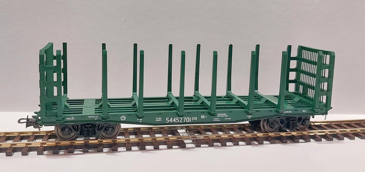 Магазин Роколенд и компания Пересвет выпустили модель платформы для перевозки леса и пиломатериалов. Очередная модель под брендом Peresvet H0 Classic вышла вновь с торцевыми щитами (так же как и предыдущая) и в зеленой цвете.