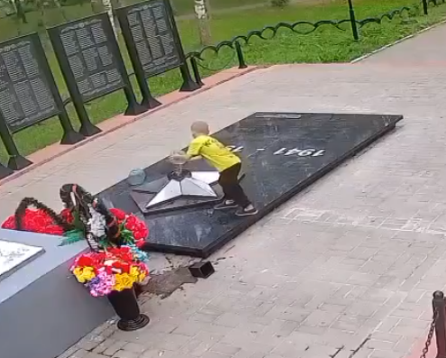 Следователи удивились: Приезжий ребенок показал странный жест перед тем как затушил Вечный Огонь, молитва Аллаху?