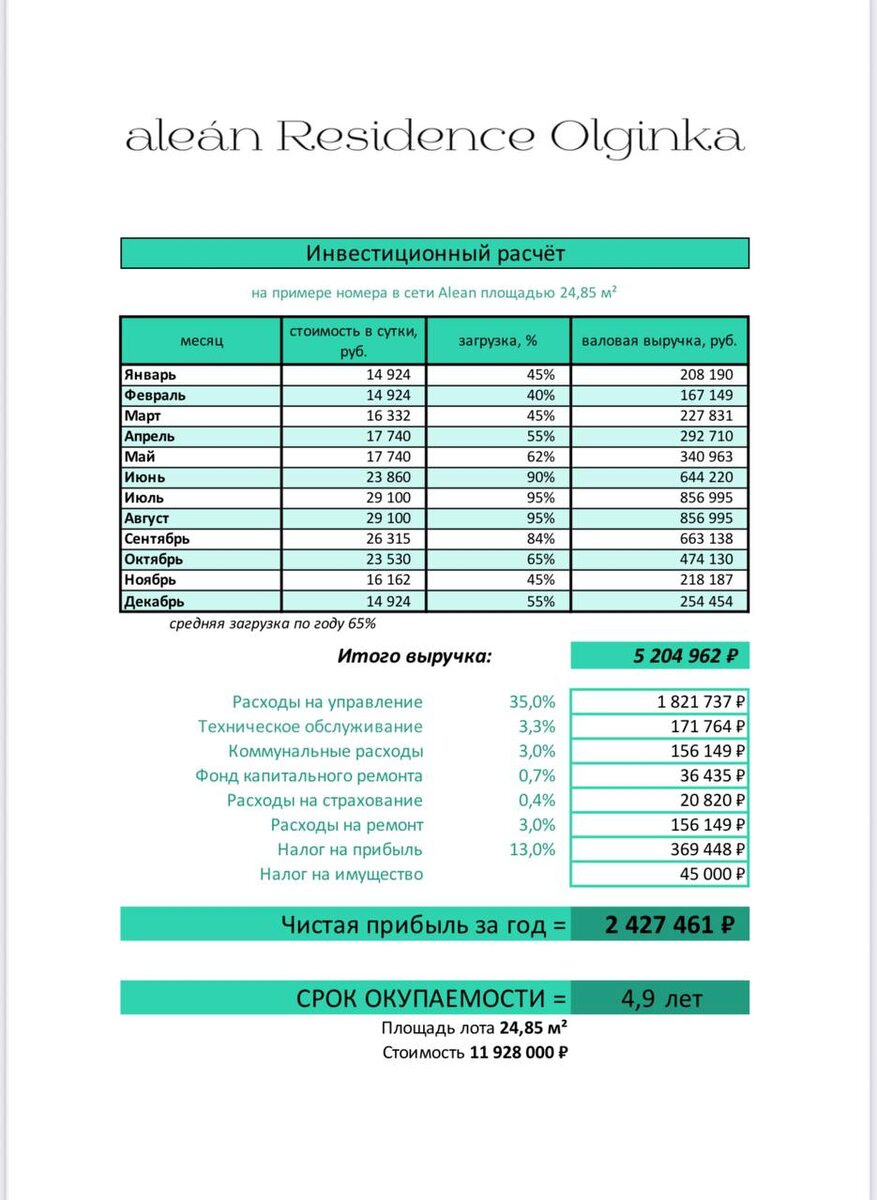 Готовый бизнес под ключ 🔑 Под управлением опытного отельера Alean - бренд продает сам себя! Семьи с детьми очень любят эту сеть отелей❤️ Пример расчета окупаемости💰 по бронированию, фактические цифры превзошли прогноз💱 Готова ответить на любые ваши вопросы🤝🏽