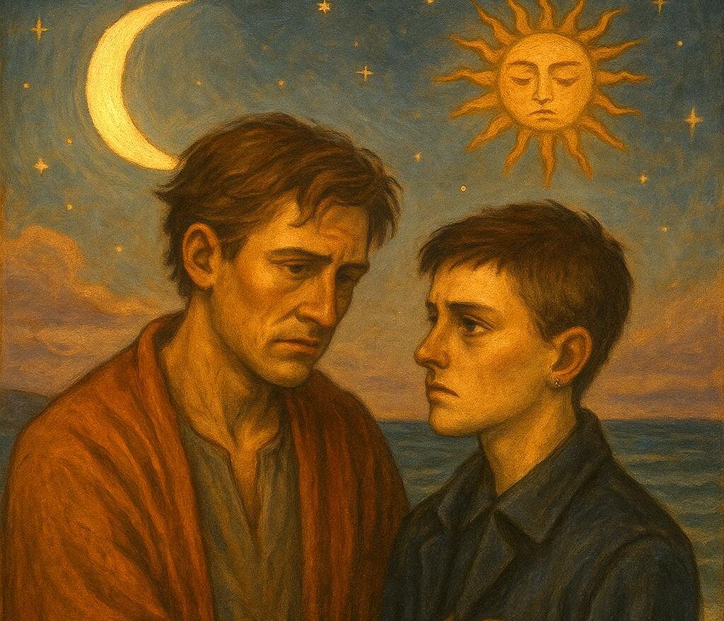 Интересно, как в колоде Декамерон изображён Аркан Солнце. На песке лежат два обнажённых мужчины. Нет, это не про однополую любовь. Это про равноправие. Про то, как выглядит союз, в котором женщина стремится стать наравне с мужчиной. А по факту — сама становится мужиком. И в отношениях получается не пара, а два берега — и ни капли воды между ними. Мы живём в мире, где женщина борется. За голос, за карьеру, за признание, за деньги. Она обрезает волосы, ходит в пиджаках, матерится, руководит, пьёт виски и делит счёт. Она мечется между свободой и одиночеством. Она тащит, она решает, она контролирует. Она боится быть слабой — потому что ей некому довериться. Она говорит, что хочет настоящего мужчину, но внутри уже всё занято. Она сама стала этим мужчиной. Только тело-то осталось женским. А с телом — и душа. Женская. Живая. Глубокая. Та, что хочет любить, чувствовать, течь. Почему женщины так делают? Потому что когда-то не было рядом сильного мужчины. Папа не защитил. Партнёр не удержал. И т
