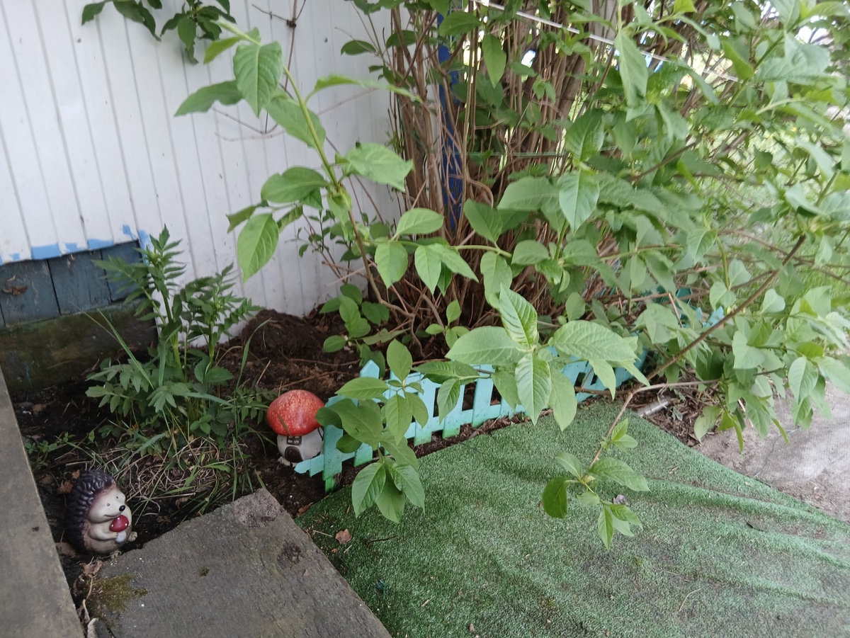 На четвертый день у меня дошли руки до "цветника" :)))))))))))))))))) Ну как "цветника" :)))), если у вас нет цветов, проявите креативность и культивируйте в клумбе сорняки :)))))))))))) Кустик не знаю чего я еще до этого благополучно пересадила около крыльца. Вот так моя "клумба" у дома выглядела до: А так после :))) Проснулись ребятишки, напекла им праздничных блинов. Вкусненько позавтракали на веранде. Вода в бассейне стала совсем теплой, так что до обеда дети вылезали оттуда только перекусить и попрыгать на батуте. Имениннице я налила в ванночку воды. Но она поплавав вчера со мной на матрасе в большом бассейне, тоже рвалась к старшим. Так что периодически приходилось выгонять их из бассейна и идти купаться с Полей. А потом загорали с ней в тенечке на матраце. Домой собрались уже в четвертом часу. Подъехали к дому, смотрим и Иван с Аленой идут. Помогли нам подняться. Накормили, напоили, комп Руське починили, в магазин за продуктами сходили. Просто идеальные гости :))))))))))) А я