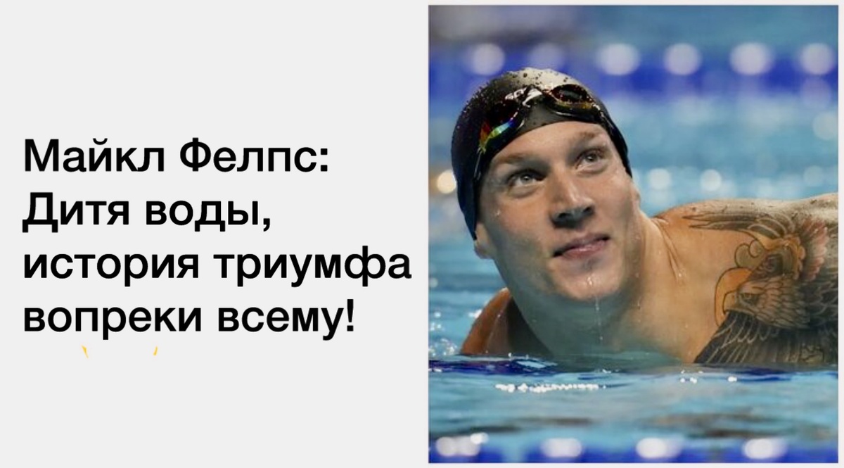 Майкл Фелпс - имя, которое знает каждый, кто хоть немного интересуется спортом. 28 олимпийских медалей, из которых 23 золотые, - это абсолютный рекорд, который вряд ли будет побит в ближайшем будущем. Но мало кто знает, что путь к вершине славы для этого величайшего пловца был далеко не простым. Он боролся не только с соперниками на дорожке, но и с собственными проблемами, начиная с лишнего веса в детстве. Эта история - не просто биография выдающегося спортсмена. Это рассказ о том, как вера в себя, упорство и правильно выбранный путь могут превратить недостатки в преимущества и помочь достичь невероятных высот. Это мотивация для всех нас, кому за 30, кто сталкивается с трудностями и ищет вдохновение для новых свершений. Готовы узнать, как обычный мальчик стал легендой? Поехали! В детстве Майкл Фелпс не был похож на будущего чемпиона. Он был гиперактивным ребёнком, с трудом концентрировался на занятиях в школе и имел проблемы с весом. А вы знали, что…? Плавание помогло Майклу не только