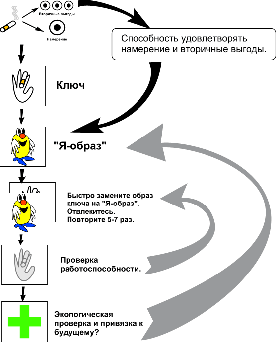 Техника "Взмах" — это метод нейролингвистического программирования (НЛП), который помогает изменить нежелательные состояния или поведение, связанные с определенными триггерами. Её цель — быстро трансформировать эмоциональные реакции и формировать новые, более позитивные. Благодаря своей простоте и эффективности, техника "Взмах" пользуется популярностью. Основа метода — концепция якорей в НЛП. Якорь — это стимул, вызывающий определенную реакцию. В технике "Взмах" задача — заменить негативную реакцию на позитивную. Для начала определите намерение и вторичные выгоды проблемного поведения. Чтобы понять намерение, задайте вопросы: (Вместо слова "это" подставьте конкретное поведение: курение, переедание, привычка грызть ногти и т.д.) Затем выясните вторичные выгоды: После этого узнайте, что человек получит от нового состояния: Проверьте экологичность изменений: Применение техники "Взмах": 1. Первый шаг — определить стимул или ситуацию, вызывающую нежелательную реакцию. Это может быть звук, м