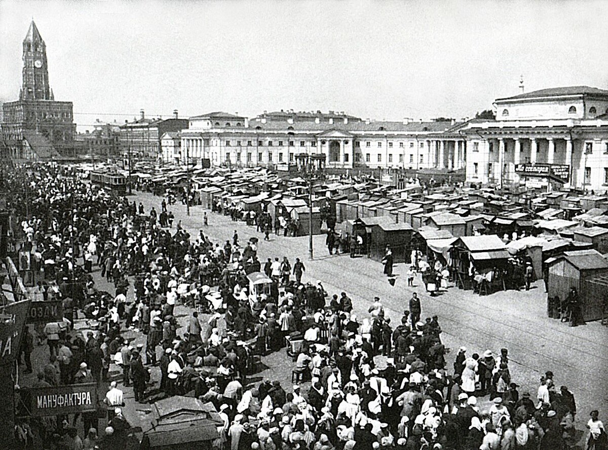 Сухаревский рынок появился в конце XVIII века, а точнее в 1789 году, когда московские власти решили перенести мясные ряды со Сретенки на новую площадь, подальше от центра. Но, как это часто бывает, рынок быстро оброс всем, кроме мяса. Сюда стекались мелкие торговцы, ремесленники, старьевщики, коробейники и, конечно же, любители лёгкой наживы. Сухаревский рынок был настоящим кладезем товаров. Здесь можно было найти всё: продукты, подержанную одежду, редкие книги, старинные монеты, ювелирные украшения, реликвии из чужих домов, самовары, иконы, карты Таро и даже якобы "чудодейственные" снадобья. Говорят, что на Сухаревке можно было купить даже то, чего не существовало! Сухаревский рынок возник изначально, как обычная торговая площадь. Здесь продавали мясо, рыбу и прочие продукты, но после пожара 1812 года ситуация резко изменилась. Вернувшиеся в Москву горожане обнаружили, что их дома разграблены. Граф Фёдор Ростопчин, человек с нестандартными решениями, придумал следующее: он разр