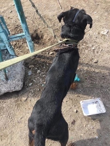 Его вырастили полным неадекватным псом.Он был привязан на стадионе чмз двое суток,двумя поводками и в наморднике.Первое фото как раз с того дня.