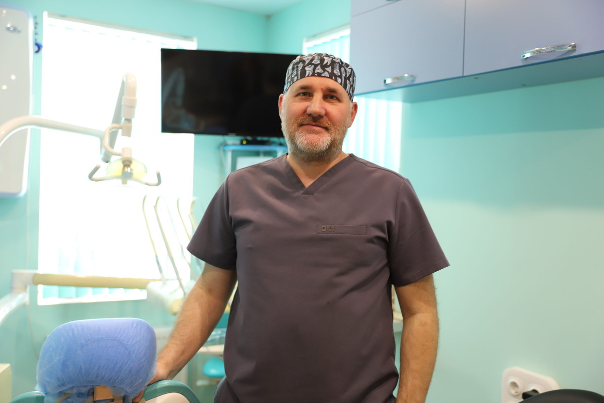 Так считает стоматолог Александр Вербовский, который трудится на благо жителей Холмской уже больше 10 лет. Придя в стоматологический кабинет, мы застали Александра Владимировича за работой. В коридоре его пациентку ожидала мама, которая, узнав, что о враче будут готовить материал в газету, сразу одобрительно прокомментировала: – Такой добрый и внимательный врач! Нам сказали зуб нужно удалять, случай сложный, но мы обратились к Александру Владимировичу, и он сказал, что спасет зуб и вылечит. Вот лечим. Большое ему спасибо! Чтобы люди больше улыбались Как рассказывает А.В. Вербовский, когда учился в школе, планировал стать переводчиком, но впоследствии решение поменял. – Мама Наталья мечтала стать стоматологом в детстве, но у нее не получилось. В какой-то момент я понял, что мне тоже это близко. Поступил сначала в Ейское медицинское училище, потом окончил медицинский университет в Краснодаре. Учился почти 10 лет, и уже 10 лет работаю стоматологом. И, честно признаться, еще ни разу не пож