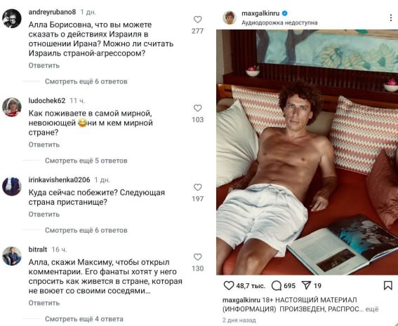 Максим Галкин*, кажется, не заметил, что его страна начала войну. Судя по последним фотографиям, он наслаждается отдыхом на Сейшелах. Вопросы о конфликте Галкин* игнорирует, а комментарии к публикациям закрыл. В 2023 году его попытка вступить в ЦАХАЛ не увенчалась успехом — «талантами не рискуют».