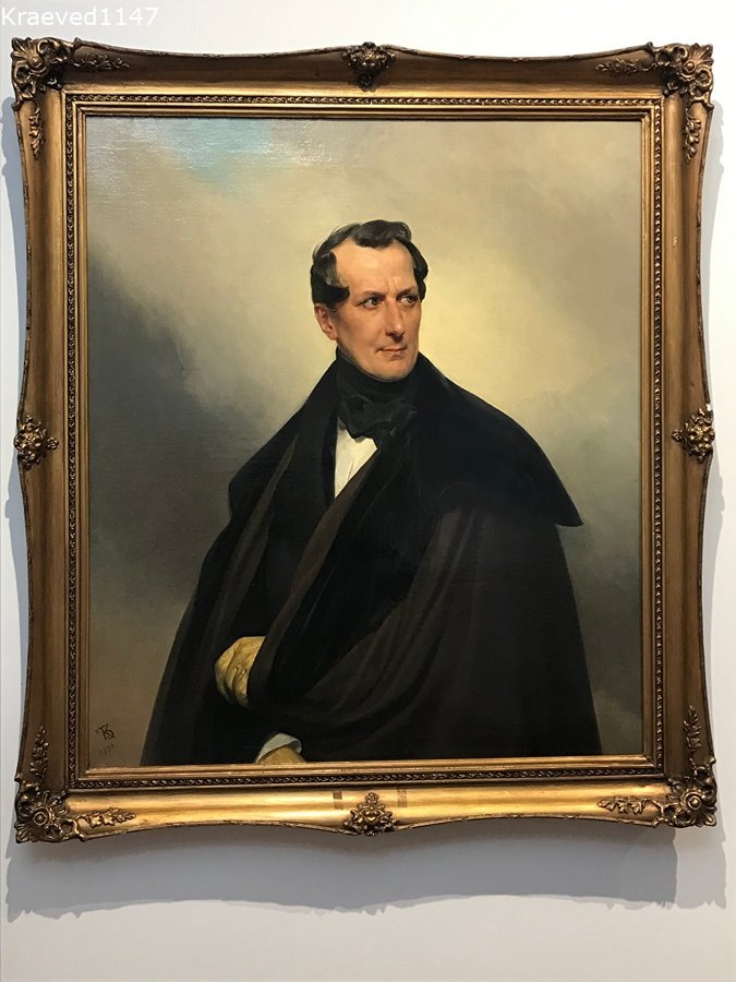 К.П.Брюллов. Портрет графа Мусина-Пушкина. 1830-е годы. Картины нет на московской выставке, она осталась у себя дома, в Архангельске. Кажется, портрет Владимира Александровича Мусина-Пушкина великолепно представляет Карла Павловича Брюллова как художника романтической эпохи. Фигура дана на фоне неба с бегущими облаками – символ вдохновенности. Окружающая обстановка не ясна. Граф как бы помещен на возвышении, а за его спиной ничего нет, пропасть. Граф Мусин-Пушкин – человек своей эпохи, высокого ума, блестяще образованный. По своим воззрениям был близок к декабристам, вступил в Северное общество и несколько месяцев провёл в Петропавловской крепости. Его участие в заговоре не доказали, но на всякий случай перевели из гвардии в обычный полк. Владимир Александрович дружил с Пушкиным, путешествовал с ним до Тифлиса. В отставке жил в Ярославской губернии. Граф был запойным картёжником, понаделал баснословную сумму долгов. Скончался неожиданно от холеры, заразился в одной из московских боль