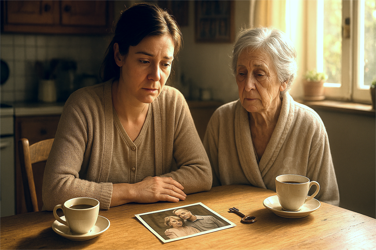 Кухня наполнялась утренним светом. Мать вошла, на секунду застыла в дверном проёме, заметив накрытый стол и серьёзное лицо дочери. Она потянулась к своему привычному месту, но что-то заставило её помедлить. Взгляд упал на фотографию, лежащую на столе, и плечи заметно напряглись.