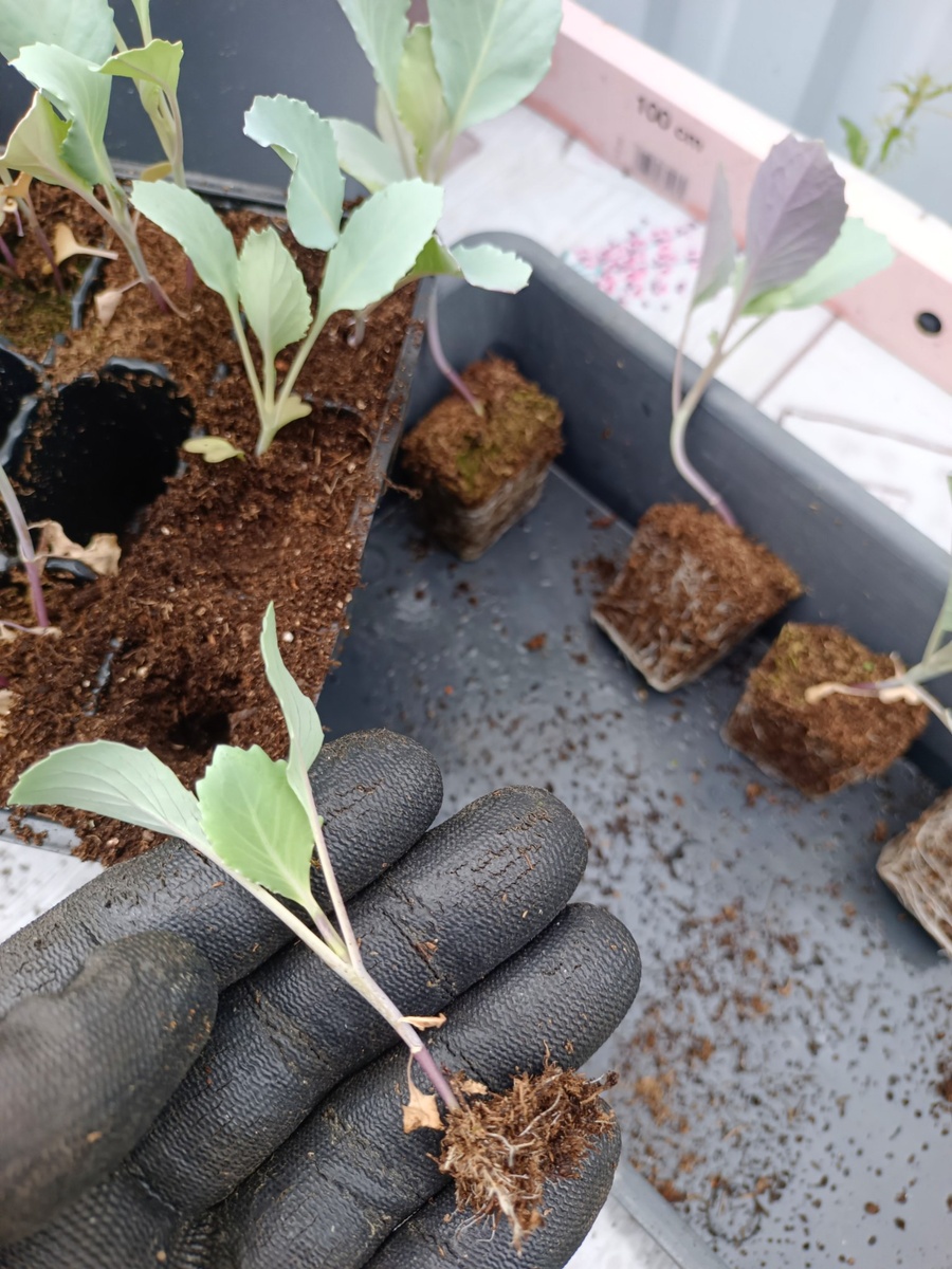 Где-то слышал, мол капуста не любит пикировки. Да и корни её повреждать нельзя. При посадке. Помнится лет 15 назад, когда я ещё покупал такого рода рассаду, взял на местном рынке белокочанную капусту. Пучок из 10 штук в земляном кому, завёрнутый в газетку. Разделил, высадил, и был урожай...