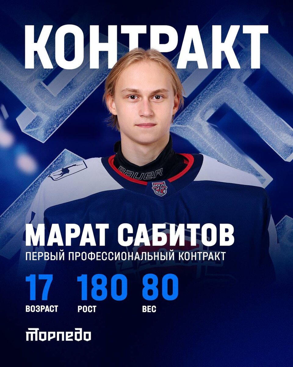 Марат Сабитов подписал свой первый профессиональный контракт с нашим клубом ✍️ Соглашение с 17-летним вратарем рассчитано на три года и носит трехсторонний характер 🥅 В дебютном сезоне МХЛ Марат проявил себя как надежный страж ворот: юный голкипер провел 40 матчей и отразил 92,4% бросков, заработав коэффициент надежности — 2,40. Помимо стандартных статистических данных, у Марата есть и другие достижения: одна передача в победном матче против «Спартака» 4 мая, а также 1 матч без пропущенных шайб. Особенно выделяются его выступления в четвертьфинале, где он был признан лучшим по проценту отраженных бросков (97,1%) и вошел в символическую сборную лиги в свой первый сезон в МХЛ 🔝 Поздравляем Марата с этим важным шагом и желаем дальнейшего развития и успехов в системе нижегородского хоккея 🤝