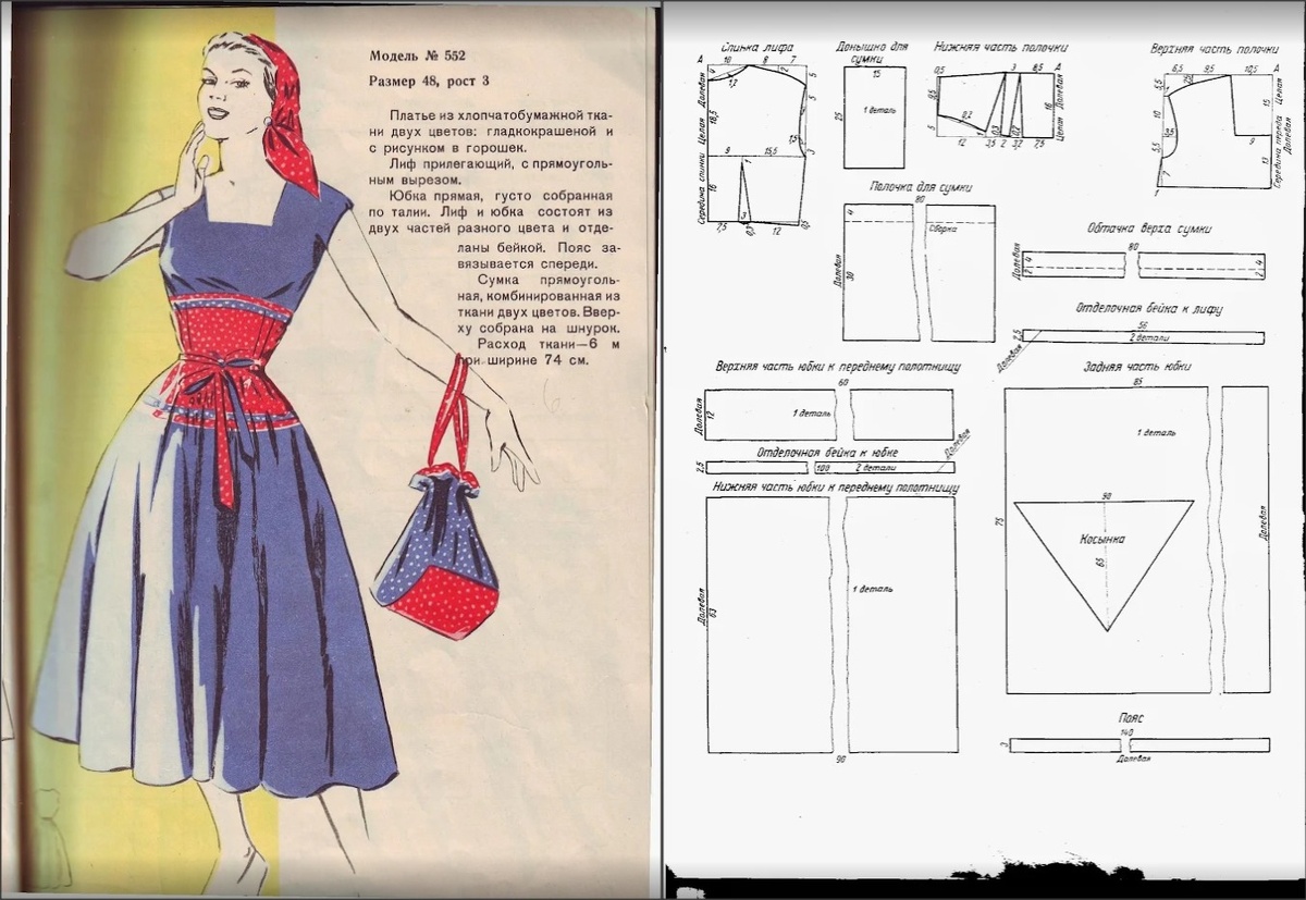 Это выкройка из сборника "Шейте сами" 1958 года, который можно целиком полистать по ссылке. Мой чертёж лифа на миллиметровой бумаге. (А юбку я хочу другую.) Выкройка лифа на чертеже отличается от эскиза. На эскизе подрез под грудью и деталь широкого пояса-корсажа. На выкройке верхняя часть полочки лифа находится где-то около уровня окружности груди. Индивидуально можно выбрать место. Чаще всего, судя по различным иллюстрациям и фотографиям, эта линия немного выше груди. (Либо пояс-корсаж полностью под грудью, как на эскизе. ) Посмотрим варианты. Горизонтальная линия на платье модели справа немного выше линии груди, создаётся эффект корсета. Интересный вариант подгрудного корсажа в крое лифа. Пояс-корсаж платья ниже линии груди. Кристиан Диор, весна-лето 1951. Жак Гриф, весна-лето, 1954. Положение подреза на лифе также находится выше линии центра груди. Варианты подобного кроя в моде 1890х-1900х годов. На мой взгляд, это эффект корсета, особенно если делать ли