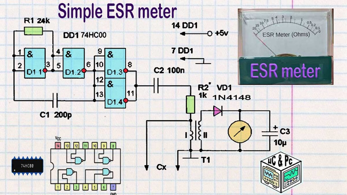 ESR (Equivalent Series Resistance) — эквивалентное последовательное сопротивление электролитического конденсатора. Это паразитный параметр, который появляется из-за ухудшения внутренних соединений или высыхания электролита. Даже при небольшой утечке ESR (всего 1–5 Ом) может нарушиться работа всей схемы — особенно в импульсных блоках питания и стабилизаторах. Из-за этого крайне важно иметь под рукой простой способ диагностики. Загляните на мой Телеграмм КАНАЛ Азбука РадиоСхем Измерение ESR — это не измерение емкости. Это определение сопротивления на высокой частоте, через которое конденсатор «пропускает» переменный ток. Чем ниже ESR — тем исправнее конденсатор. Простой способ реализовать это — омметр, работающий на частоте около 100 кГц. Простая схема зарядного устройства для Li-Ion аккумуляторов на NE555 В основе устройства: Устройство представляет собой омметр переменного тока, работающий на частоте около 100 кГц. Известно, что емкостное сопротивление (Xc) обратно пропорционально час