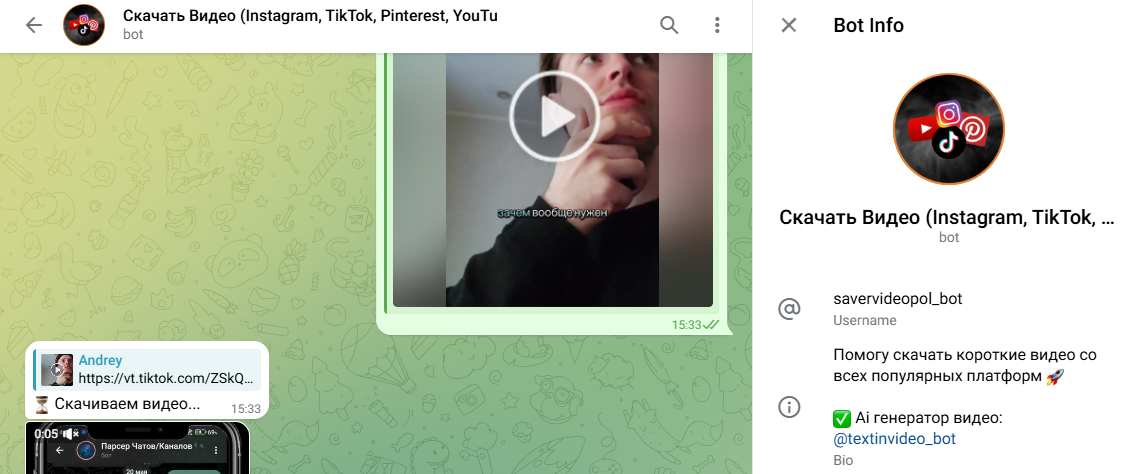 Telegram боты стали неотъемлемой частью нашего опыта использования мессенджера, значительно расширяя его функциональность. Одним из наиболее интересных направлений в развитии Telegram ботов является их способность упрощать и улучшать взаимодействие с медиа-контентом. Скачивание видео и уникализация видео - это лишь некоторые из функций, которые предлагают современные Telegram боты. Они позволяют пользователям не только загружать контент, но и модифицировать его, делая уникальным. 4 бота без которых телеграм был бы не нужен Боты в Telegram существенно улучшают взаимодействие пользователей с мессенджером, предоставляя доступ к разнообразным услугам и информации. Они могут выполнять функции от скачивания видео и генерации изображений до поиска каналов по ключевым словам. Бот для скачивания видео В мире, где видео-контент доминирует, @saverbot становится незаменимым помощником. Этот бот предоставляет пользователям простой и эффективный способ скачивания видео из различных источников. Основ