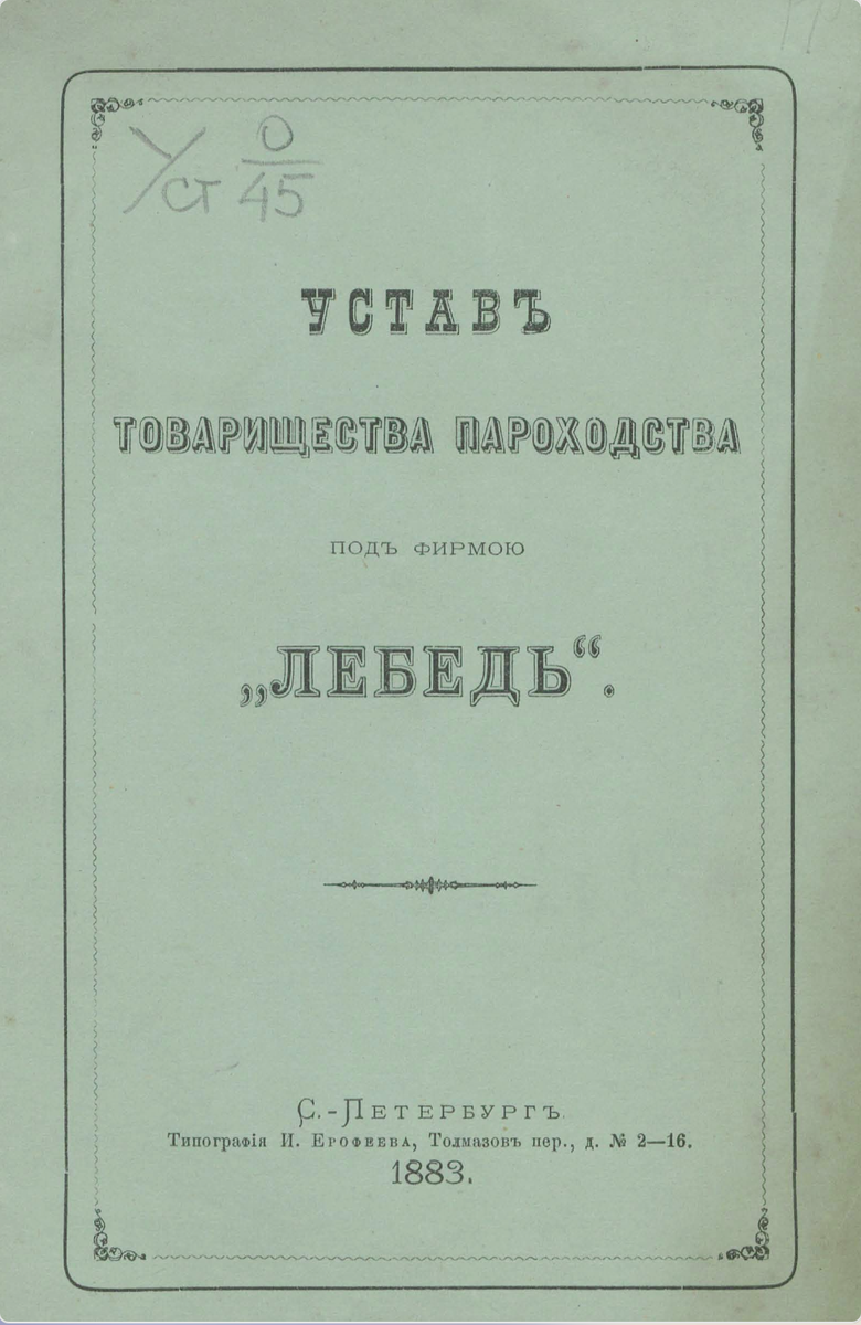 В 1870 г. Устав товарищества «Лебедь» обновляют, во-первых, по причине изменения правовой формы — предприятие становится Товариществом на паях, а во-вторых, пароходство в очередной раз расширяет сферу своей деятельности, включив в область своих интересов «перевозки грузов сухопутно и водою во все места Российской Империи».