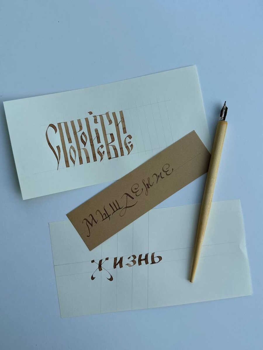 Вязь, скоропись и полуустав - мои скромные успехи в освоении каллиграфии и русского кириллического письма в частности. Очень медитативное занятие 🧘🏻🖋️