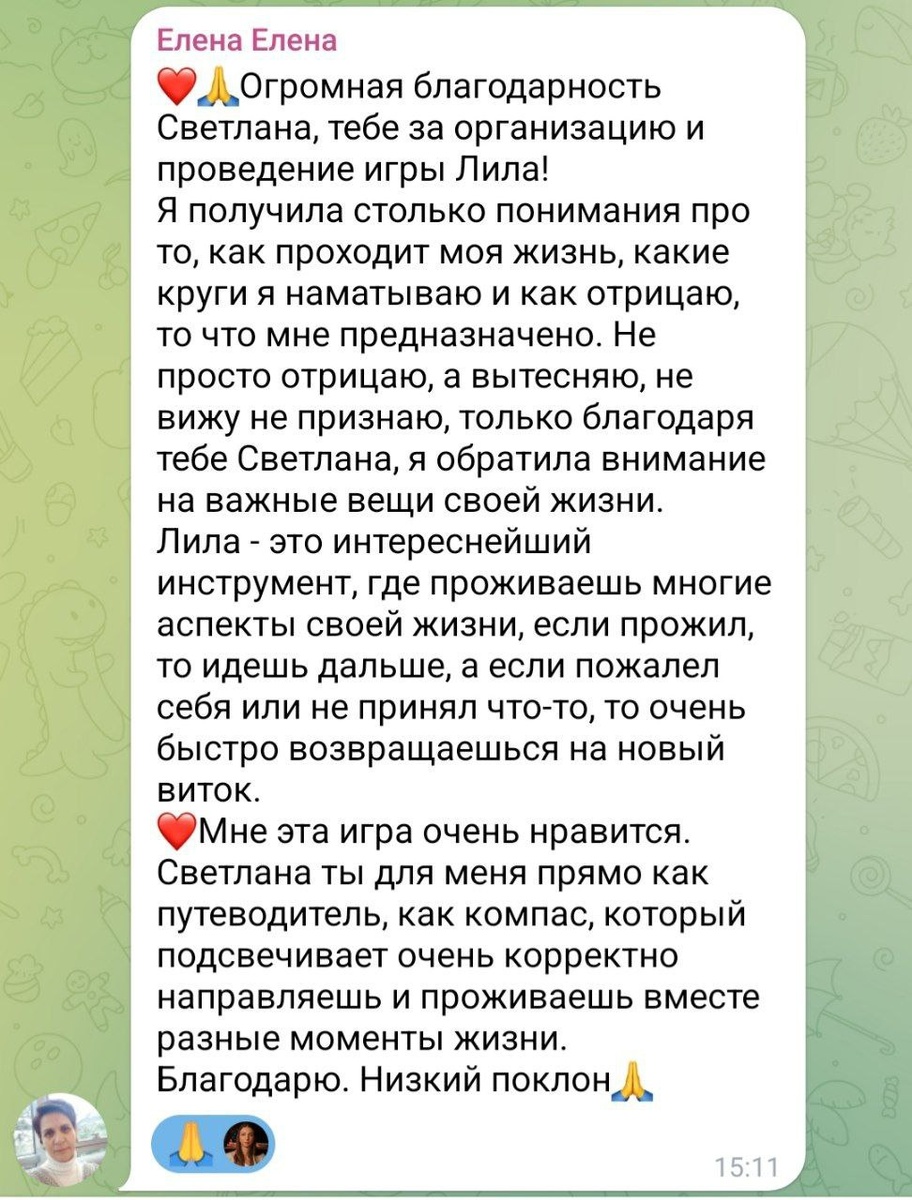 В ответ на пост Лила. Что мне дал этот опыт? Даже не в плане сути игры, как инструмента познания и помощи людям, а вцелом. 1. Осознала максимально глубоко, что надо тренировать свою выносливость целостно, т.к. на текущий момент после 5-6 часов Лилы я очень хочу спать, прям выключаюсь, и могу проспать часа 3-4, итого получается, что мой день состоит только из Лилы (5-6 часов игры и 3-4 часа сна), а это не то, что я хочу. Лила – прекрасна, но для меня важен баланс, важны и другие сферы жизни. Изъявляю намерение проводить Лилу хоть по 8 часов, и быть наполненной после этого также как после 3-х часов Точки Сборки. Для этого пообещала себе делать минимум 10000 шагов в день регулярно, периодически чередуя с бегом, и может другими активности для разнообразия, великом, например. Пока вцелом получается, хотя и не без самосаботажа, отчитываюсь об этом у себя в сторис каждый день, и заношу в дневник успеха – отличный пример внешней мотивации, пользуйтесь, если для вас это работает и присоединяй