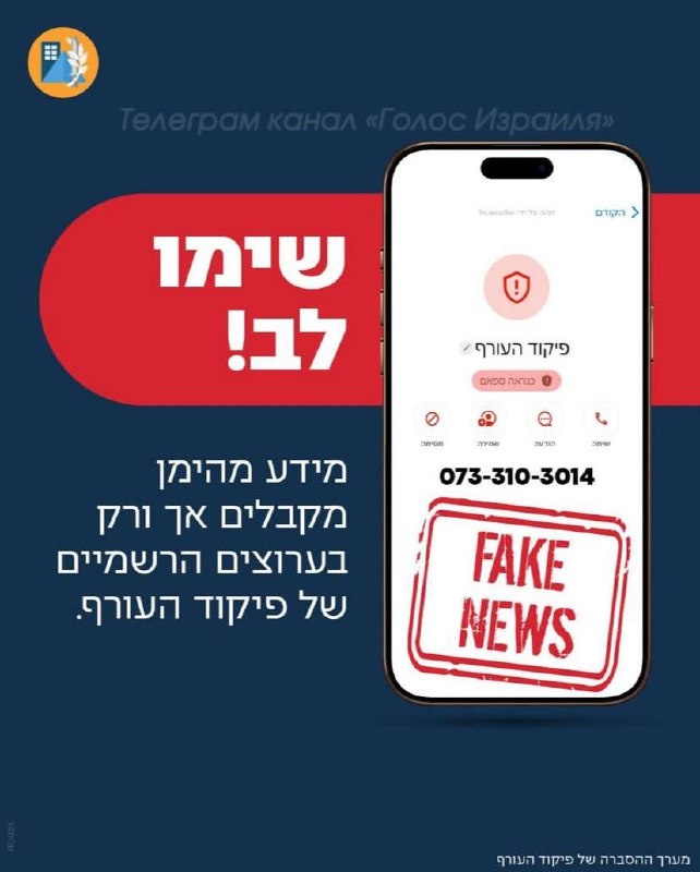 Сегодня израильтяне получали звонки с номера, определяющийся как Пикуд а-Ореф (Служба тыла).