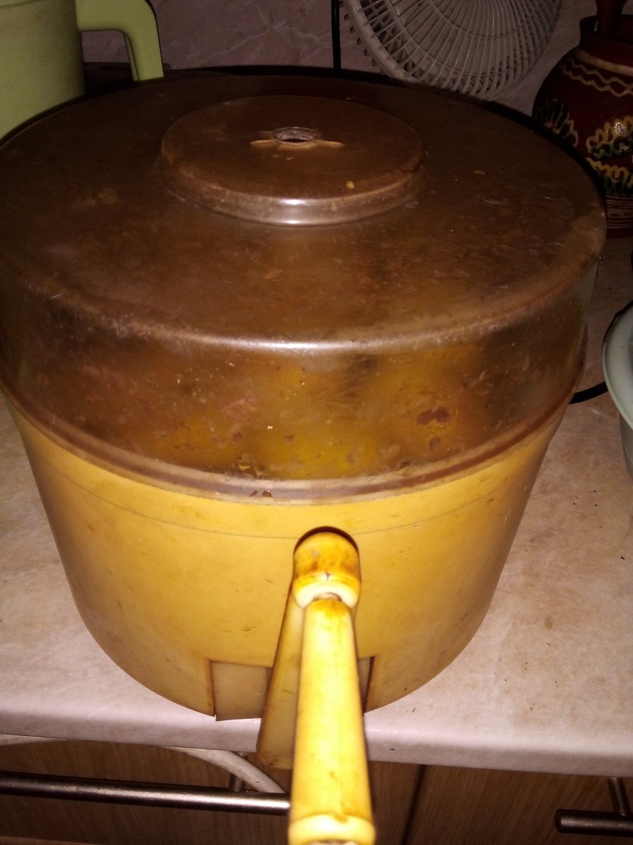 Просто фото механической картофелечистки, обнаруженной в закромах - наверно таких больше не делают. Если картошку запекать в духовке, такой чтстки достаточно, а чтобы слой кожуры сошел побольше, надо ещё вертеть и вертеть ручку. Слишком реалистично. Надо бы покрасивей сфотографировать, начистив все до блеска. Но уж очень есть хотелось.