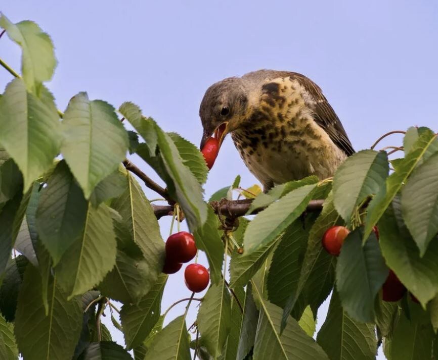 Птицы способны за пару дней уничтожить весь урожай вишни. Скворцы, дрозды, воробьи и синицы – главные враги спелых ягод. Как отпугнуть пернатых, не навредив им? Рассмотрим самые эффективные методы. ✅ Как использовать: ⚠ Важно: Сетка не должна травмировать плоды и листья. ✔ Что подойдёт: ✅ Как применять: ✔ Варианты: Птицы быстро привыкают к статичным пугалам. Сделайте "движущееся" чучело: Птицы не любят резкие ароматы: *(Эффект временный, нужно обновлять раз в 3-5 дней.)* Отвлеките птиц от вишни: Рядом с вишней посадите рябину или черёмуху – птицы чаще клюют их. ✖ Пластиковые пакеты (птицы быстро привыкают).