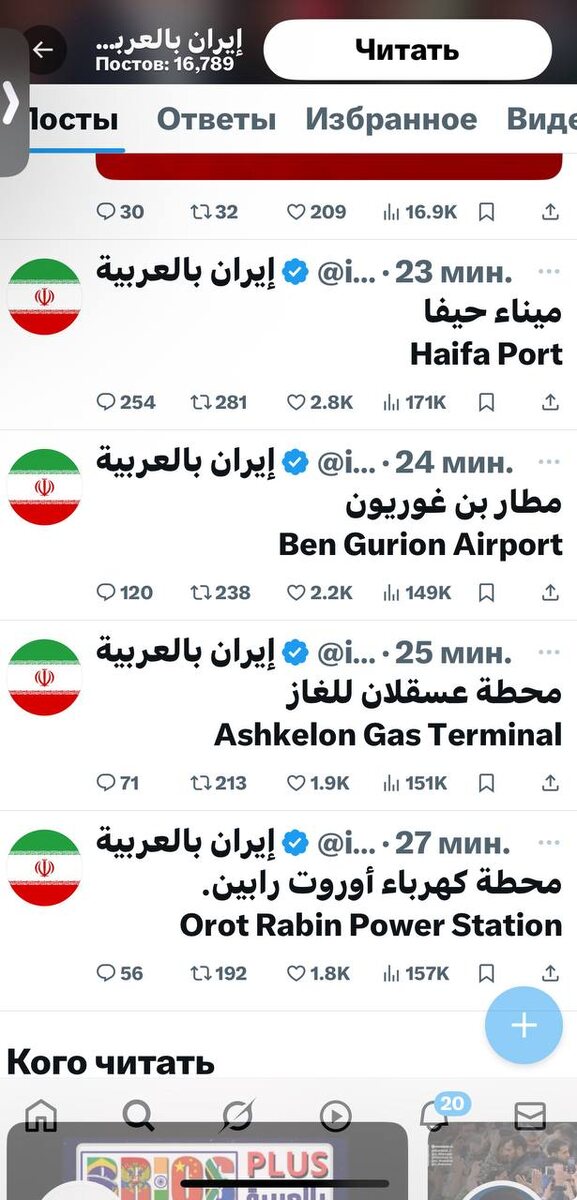Иранский официальный эккаунт в Х публикует список целей, которые они якобы планируют поразить предстоящей ночью