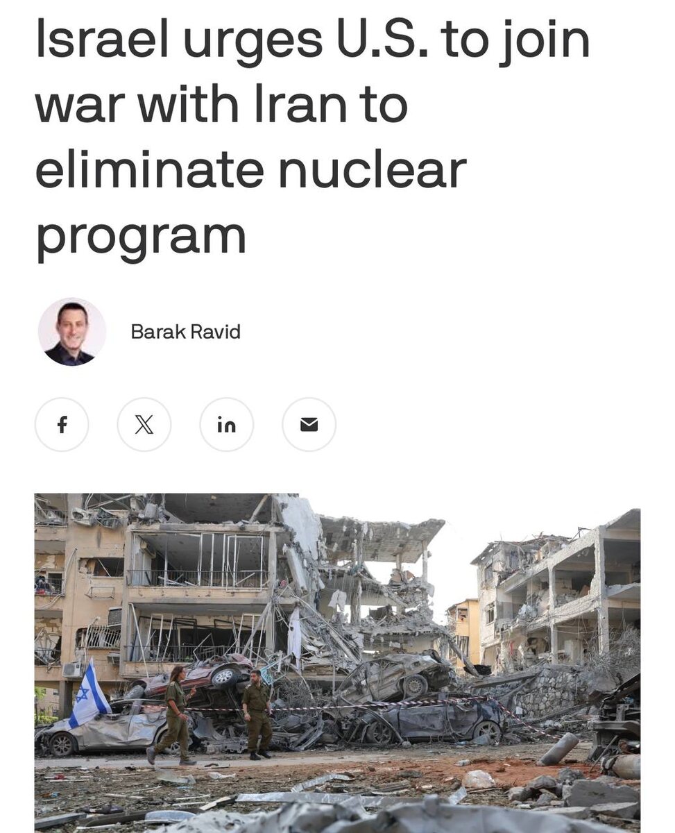 🫧 «Трамп, введи войска!»: Израиль обратился к США с просьбой присоединиться к войне с Ираном, чтобы уничтожить его ядерную программу