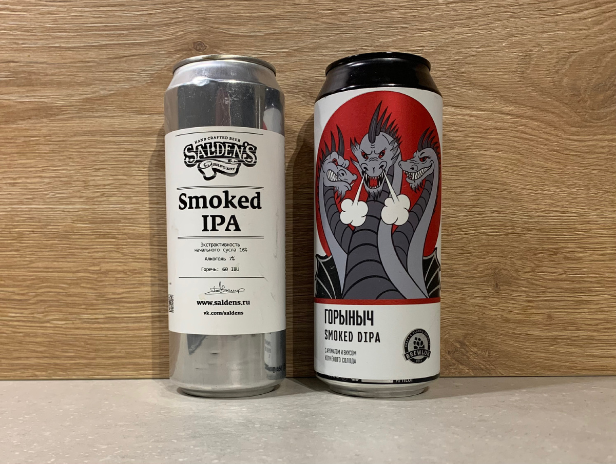 Сегодня попробуем два российских пива в стиле "Smoked IPA (Копченый IPA)" от пивоварен, знакомых всем: Salden's и Brewlok. Главное отличие копченого IPA от обычных версий - копченый солод, который используют для варки. Smoked IPA Копченое пиво в различных стилях тульская пивоварня Salden's варит периодически, и это получается у них нормально. В 2025 году пивовары из Тулы добрались и до версии IPA с копотью. Оформление банки типично минималистичное для Salden's, состав также просто "раскрыт", никакого упоминания про копченый солод нет, про хмели тоже ни слова. Банка 0,45 стоила порядка 220 рублей, дата розлива - 15.01.2025. Очень большая пенная шапка, цвет - темно-медный, крепость - 7%, ЭНС - 16%. В аромате Smoked IPA хорошо выражены копченые ноты, во вкусе ощущаются чуть кислящая копоть, горечь (на заявленные 60 IBU не очень похоже) и намеки на сладковатую карамель, в послевкусии горечь немного усиливается и надолго остается во рту. Пиво довольно плотное, пьется не быстро. Горыныч