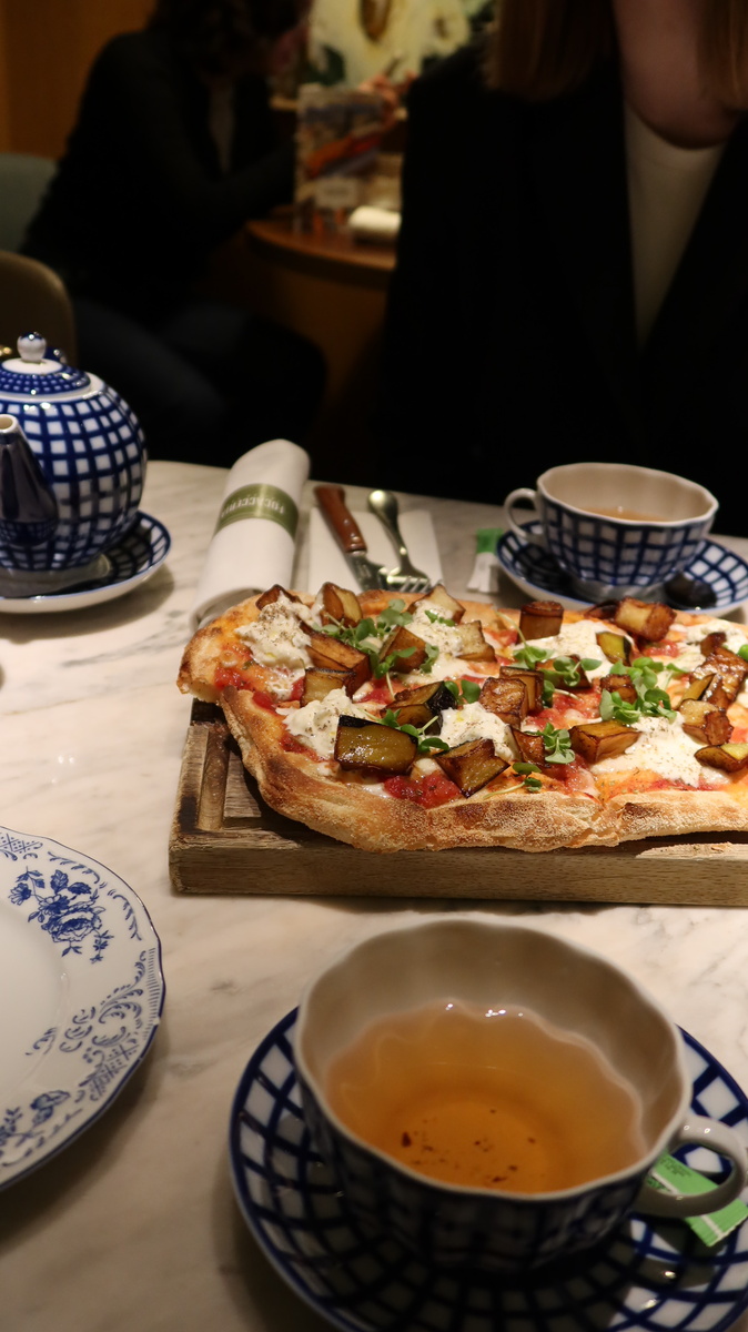 Пицца — тёплая, ароматная, с тонким тестом и насыщенной начинкой. Все салаты, что мы заказали, были свежими и вкусными, без намёка на случайность или усталость продуктов. Напитки, чай — тоже на уровне. Всё, что мы попробовали, оставило ощущение заботы и домашнего уюта. Я бы даже назвала эту еду «тёплой» — в эмоциональном смысле.